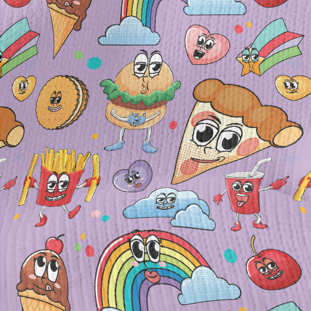 搞笑眼神食物仿毛衣布(幅寬150公分)