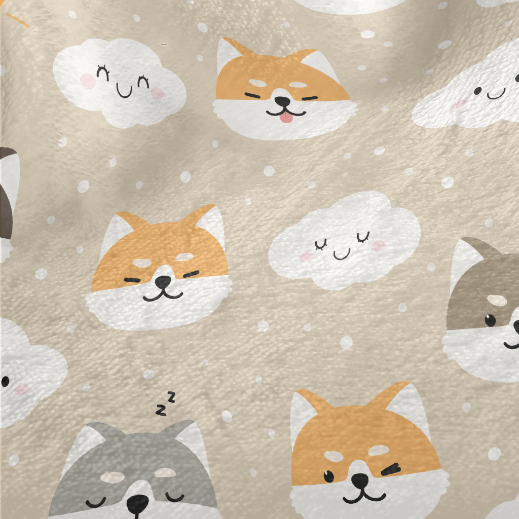 可愛雲朵柴犬法蘭絨(幅寬150公分)
