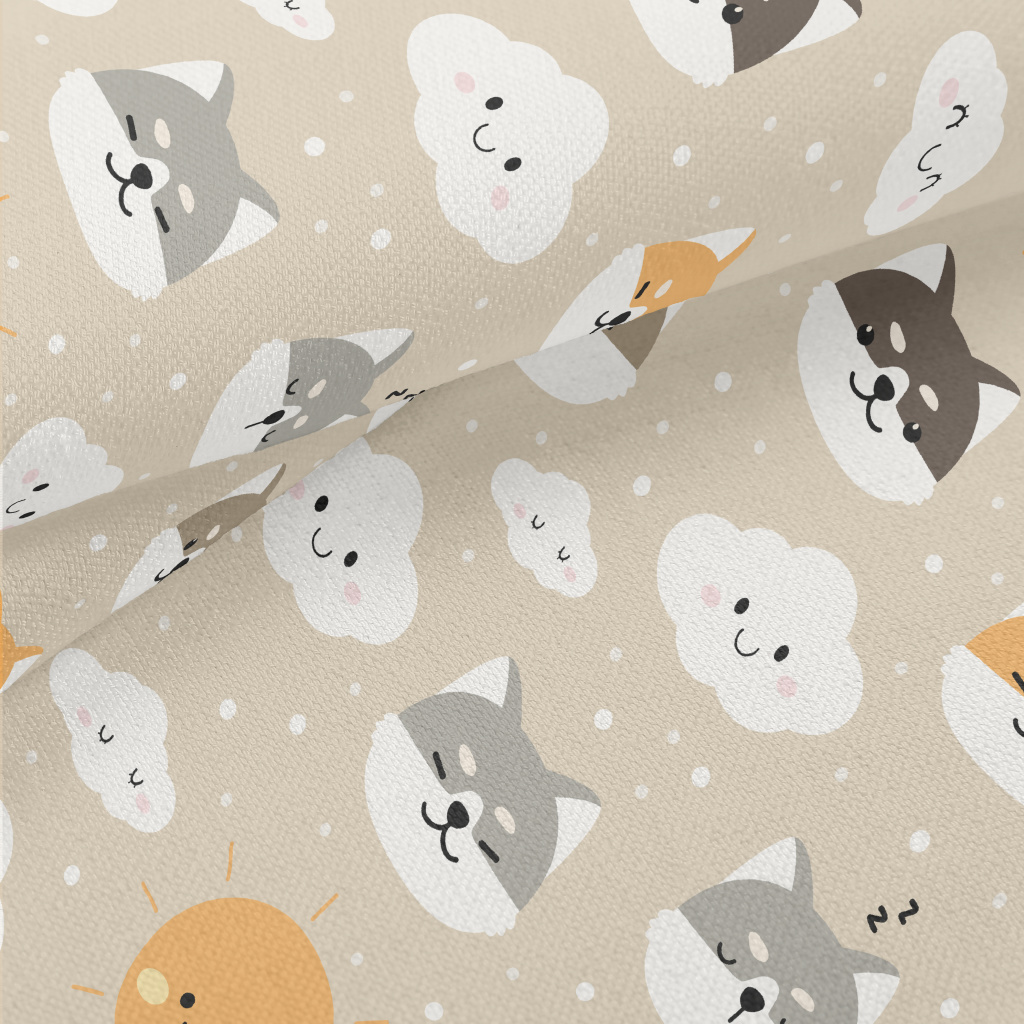 可愛雲朵柴犬竹節麻(幅寬150公分)