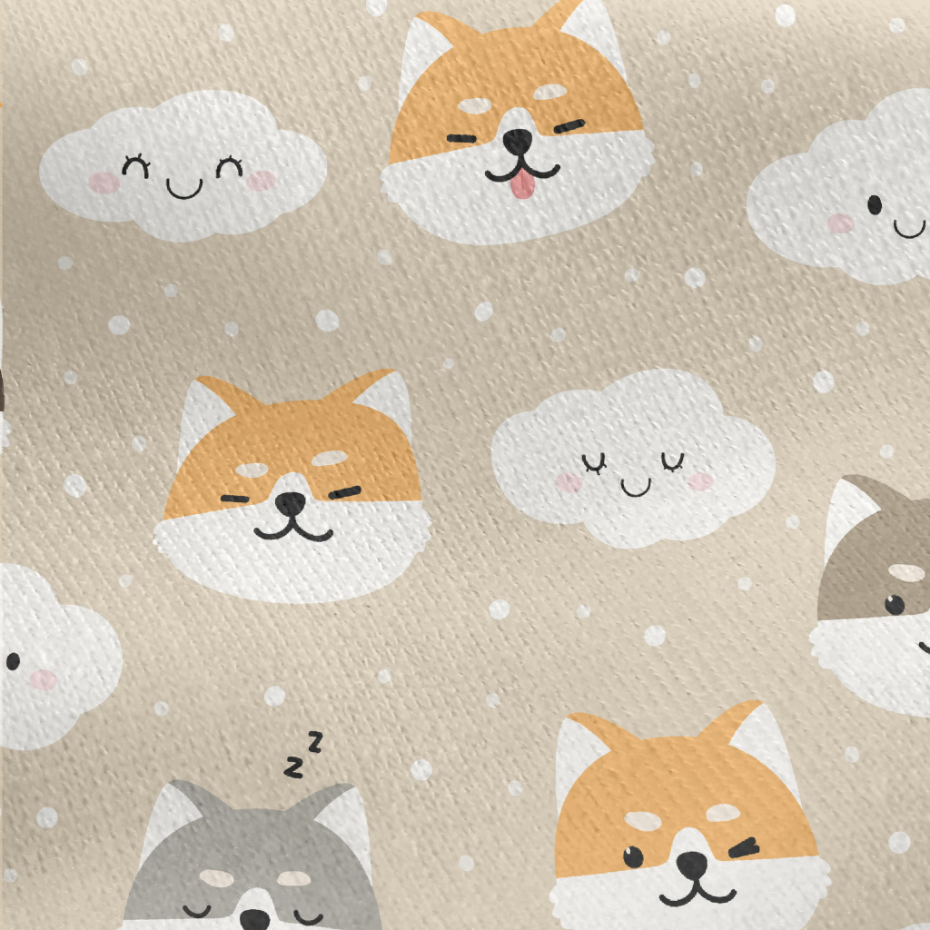 可愛雲朵柴犬刷毛布(幅寬150公分)