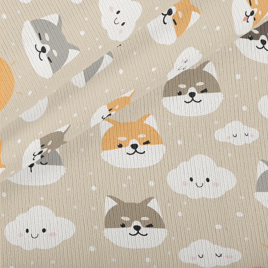 可愛雲朵柴犬仿毛衣布(幅寬150公分)