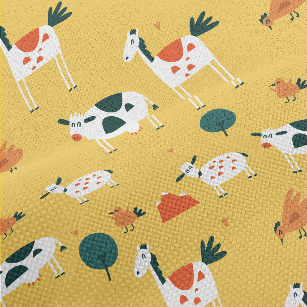 農場快樂動物麻布(幅寬150公分)