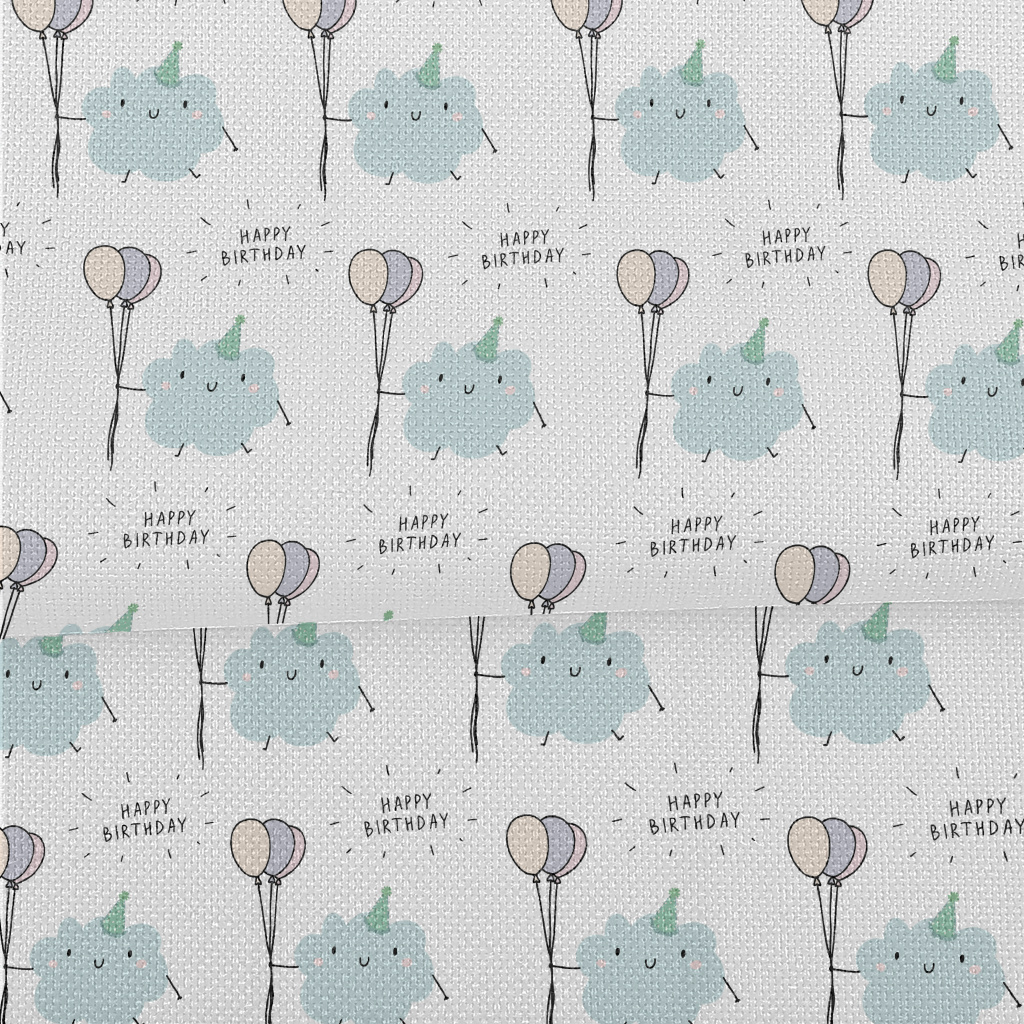 可愛雲朵生日快樂麻布(幅寬150公分)