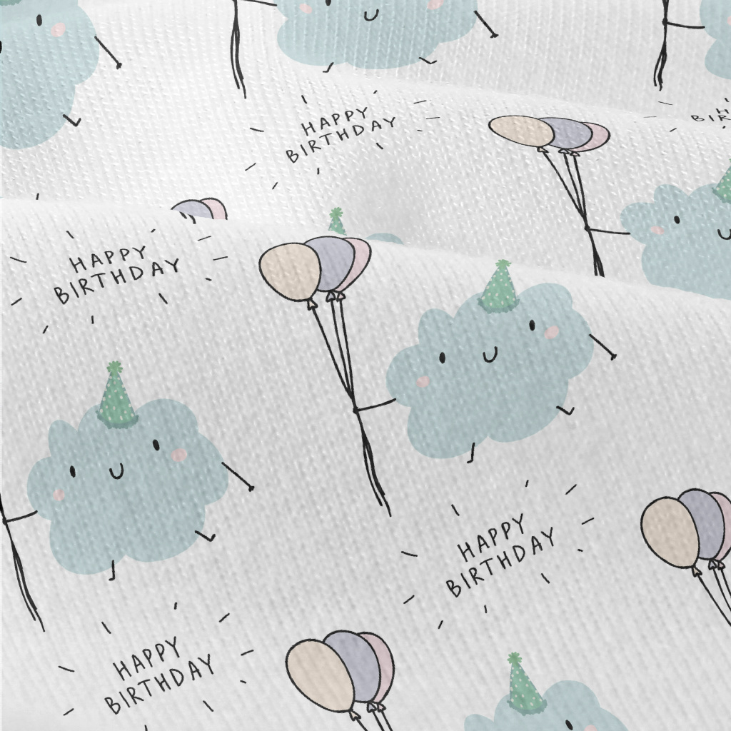 可愛雲朵生日快樂仿棉布(幅寬150公分)