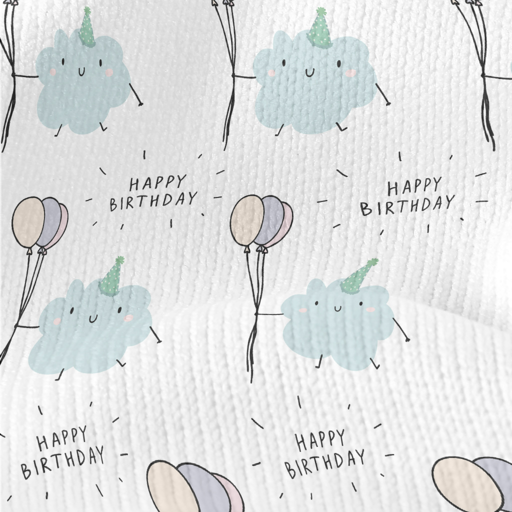 可愛雲朵生日快樂仿毛衣布(幅寬150公分)