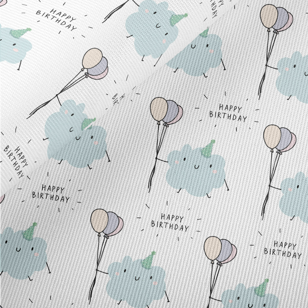 可愛雲朵生日快樂厚棉布(幅寬150公分)