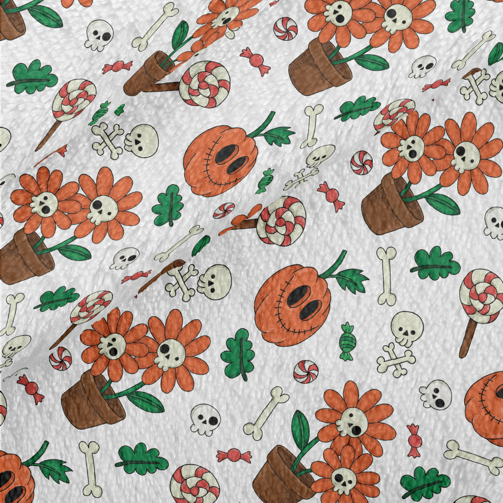 萬聖南瓜骷髏花法蘭絨(幅寬150公分)