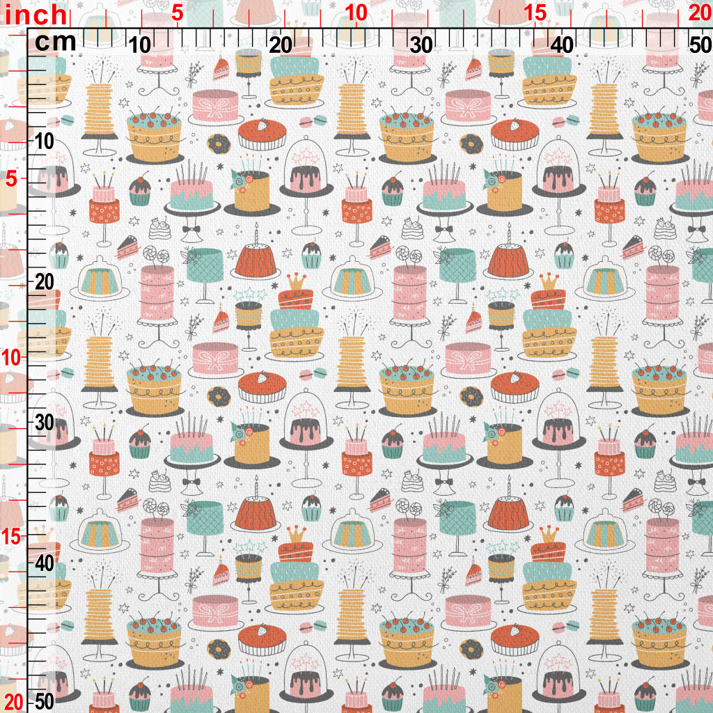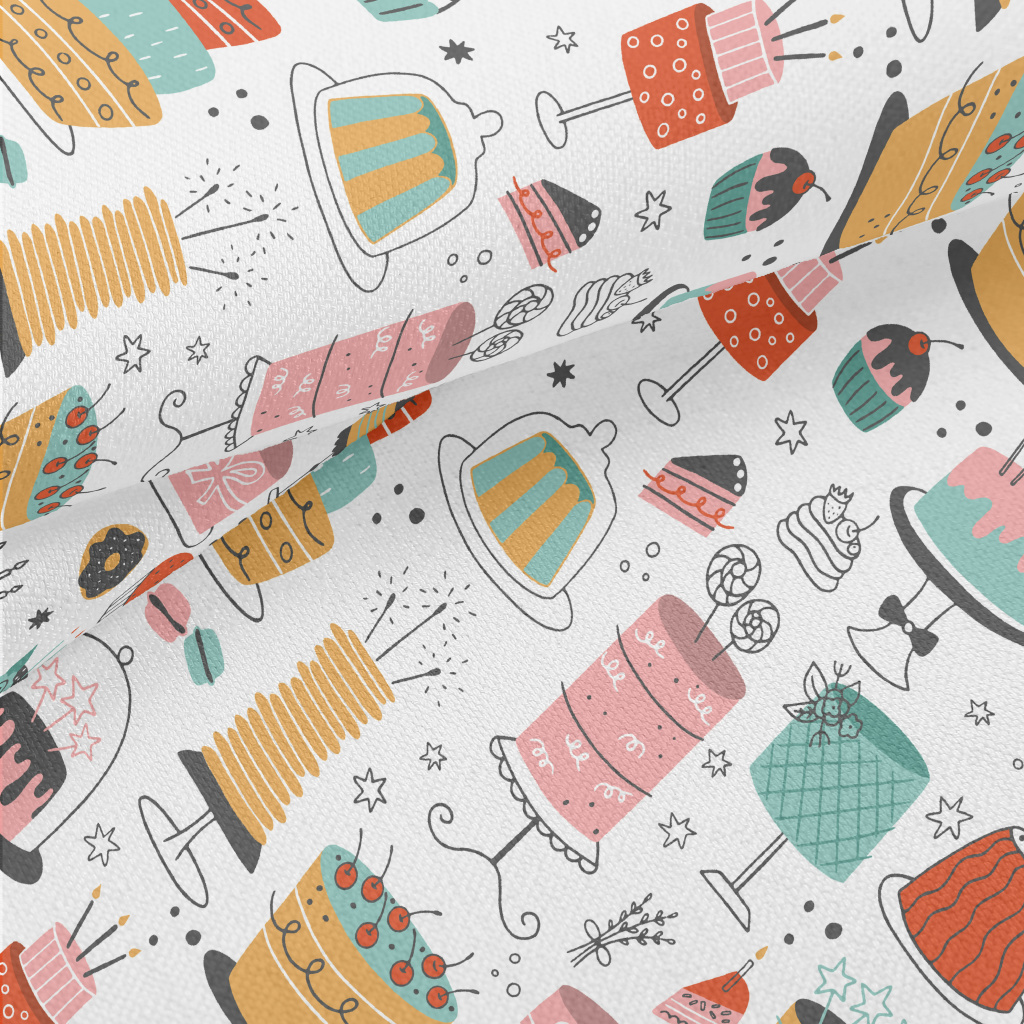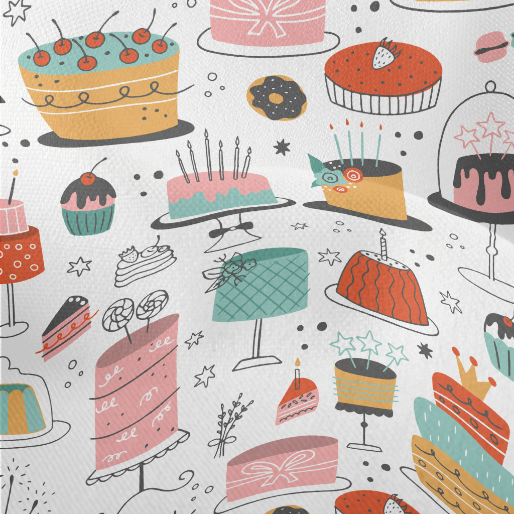 繪本風格蛋糕竹節麻(幅寬150公分)