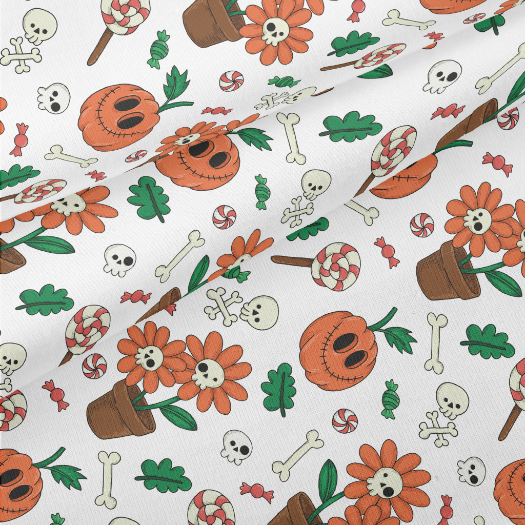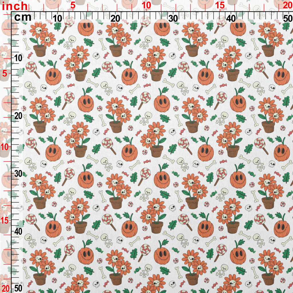 萬聖南瓜骷髏花仿棉布(幅寬150公分)