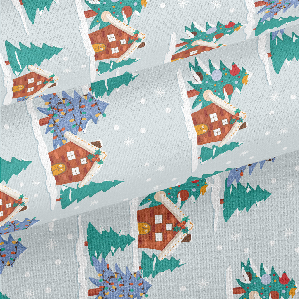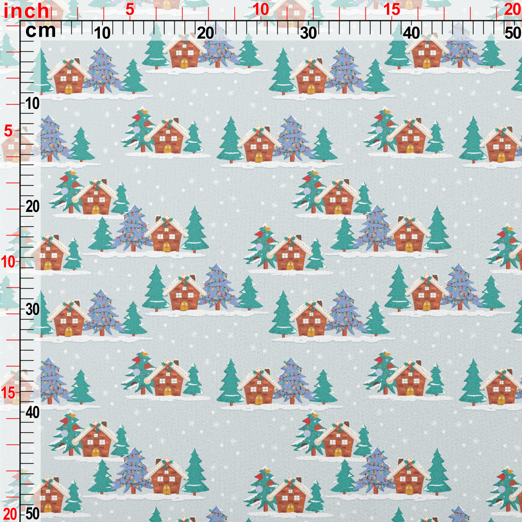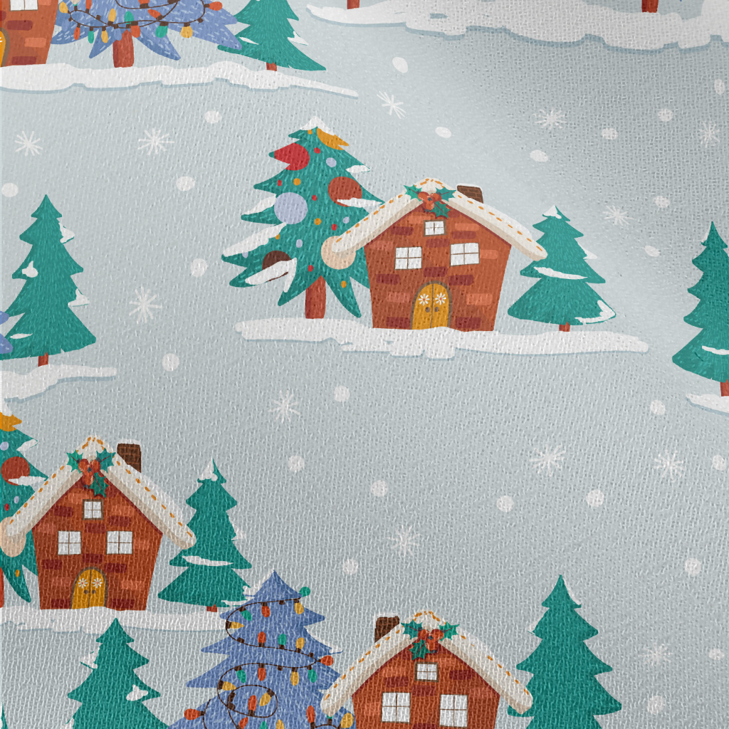聖誕雪中房屋雪紡布(幅寬150公分)