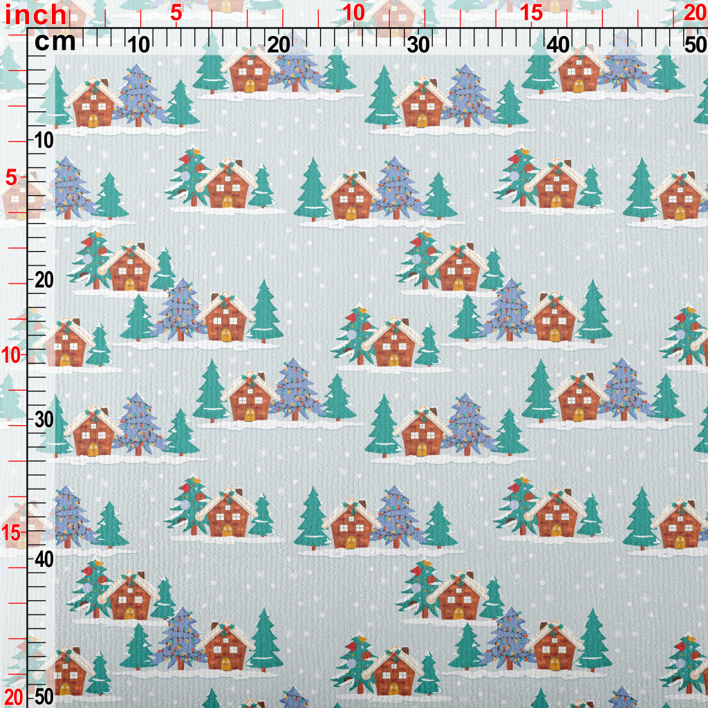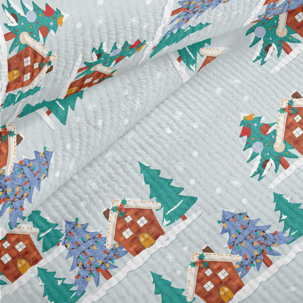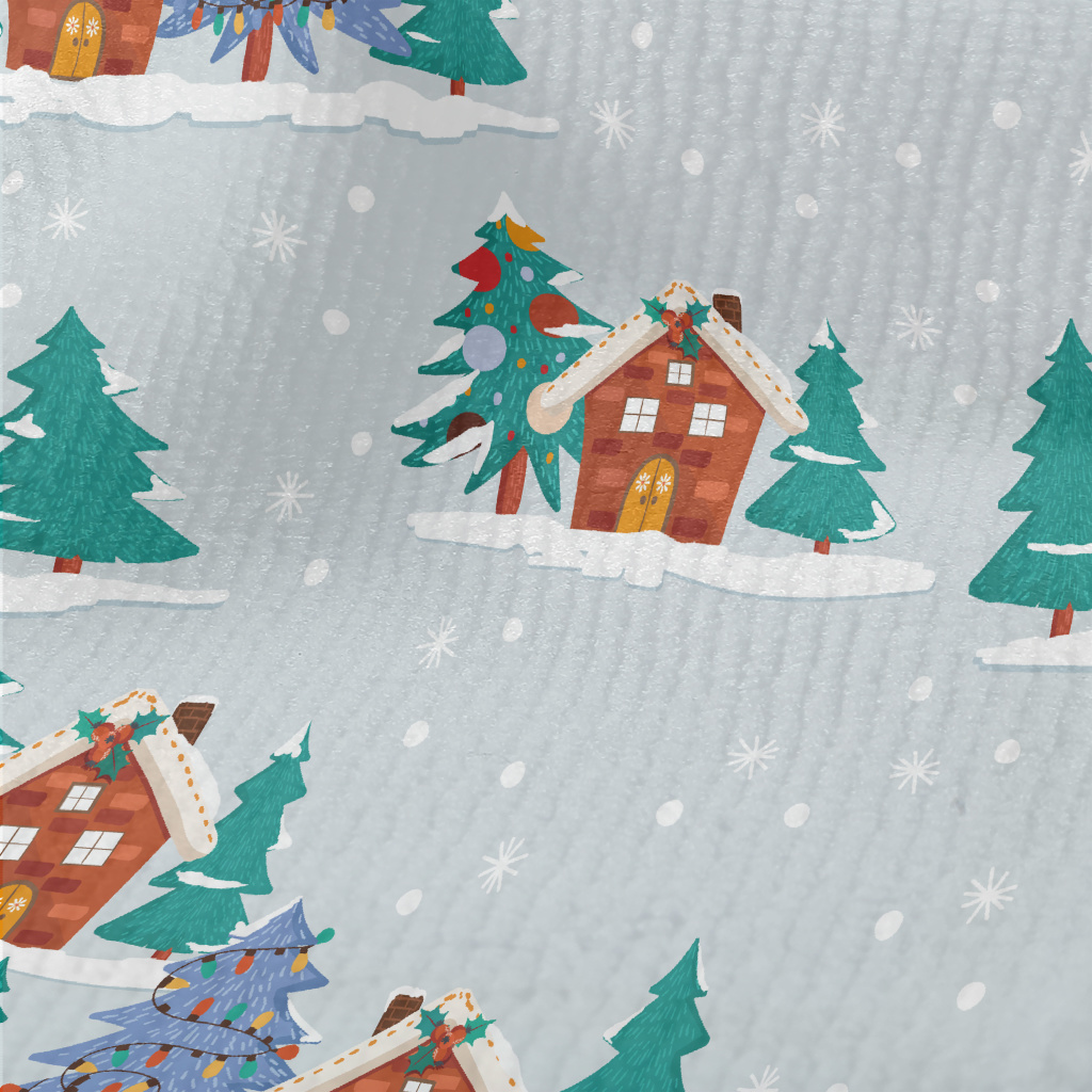 聖誕雪中房屋毛巾布(幅寬160公分)