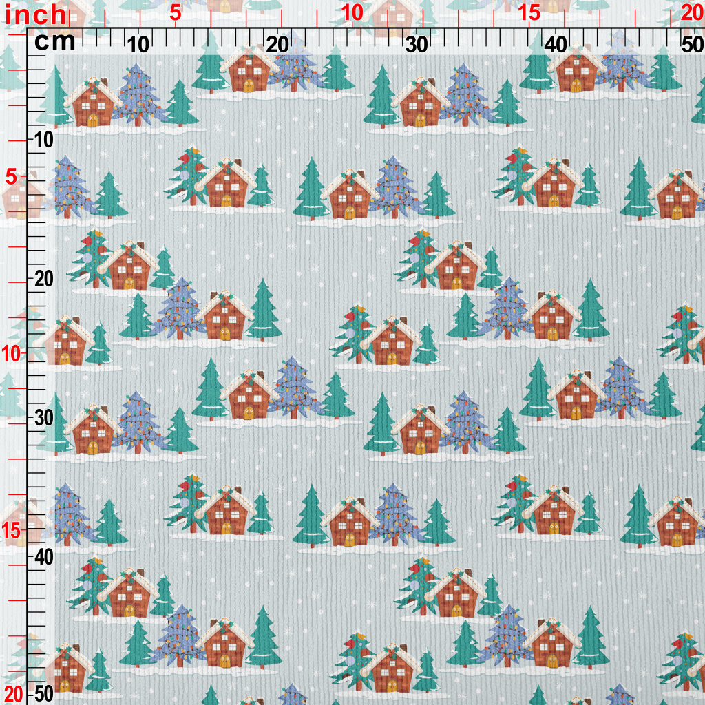聖誕雪中房屋燈芯絨(幅寬150公分)