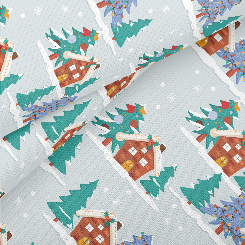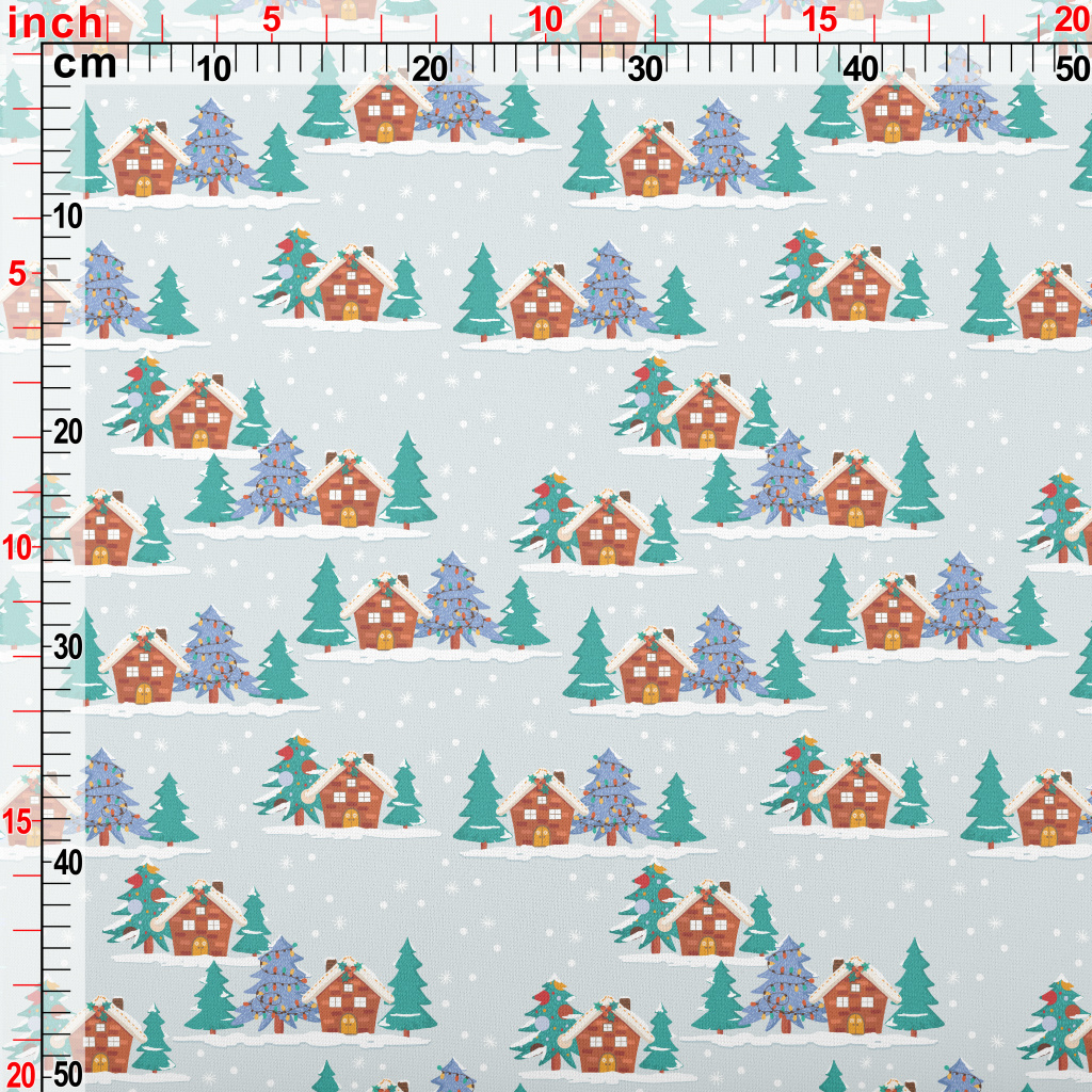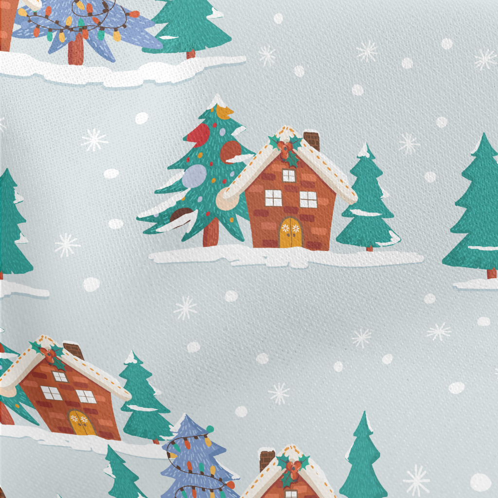 聖誕雪中房屋羅馬布(幅寬160公分)