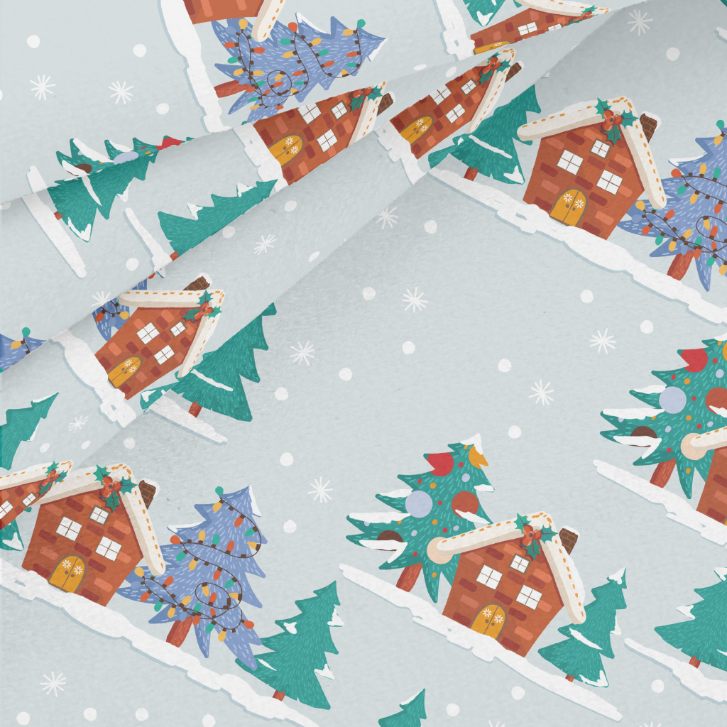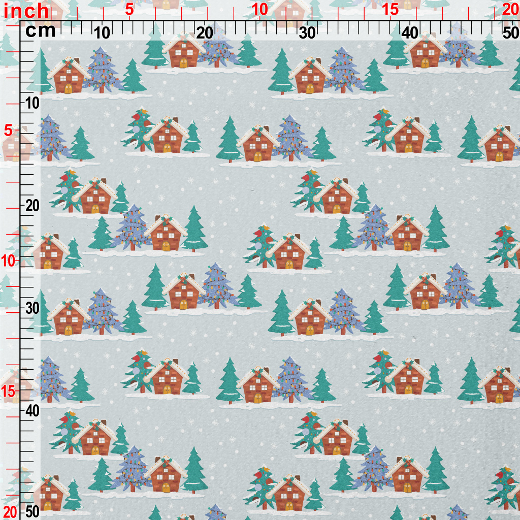 聖誕雪中房屋水晶絨(幅寬160公分)