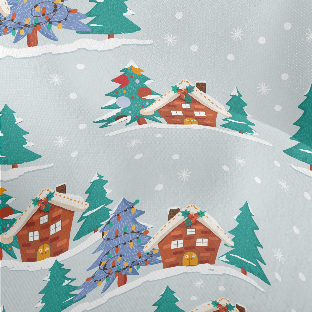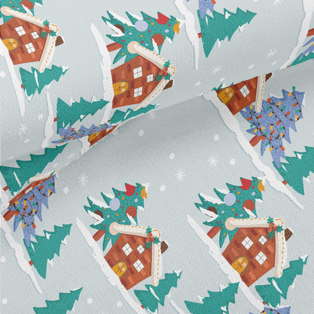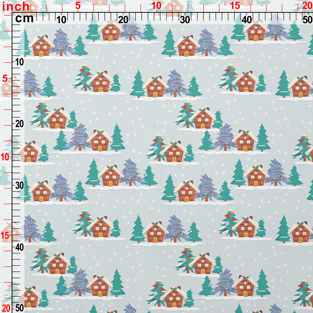 聖誕雪中房屋竹節麻(幅寬150公分)