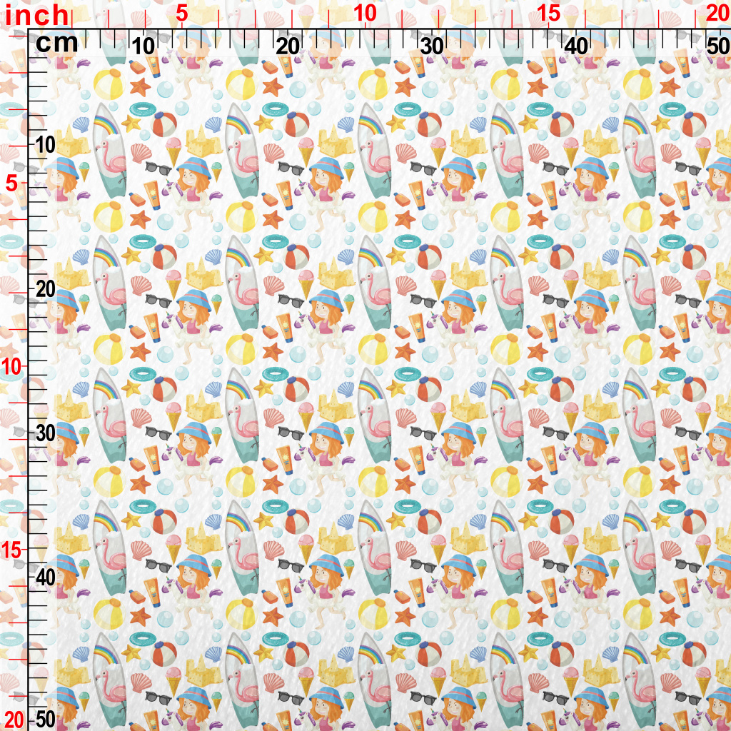 海灘玩水女孩法蘭絨(幅寬150公分)