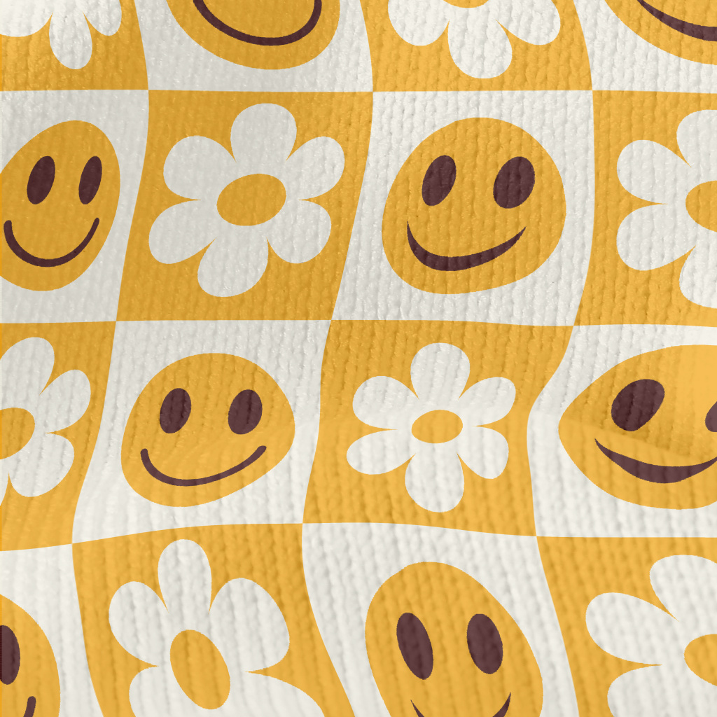 格子笑臉花朵仿毛衣布(幅寬150公分)