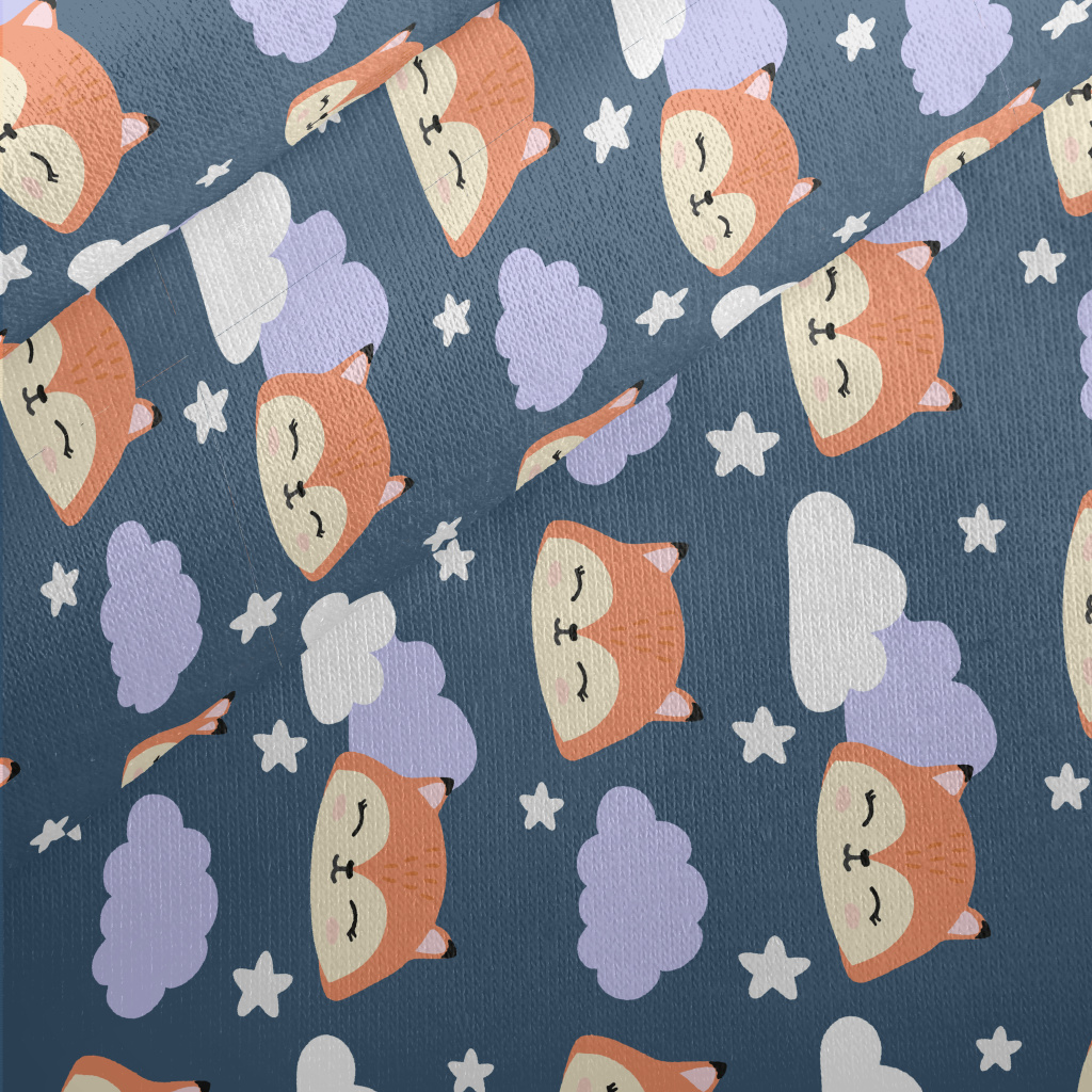 狐狸星星雲朵刷毛布(幅寬150公分)