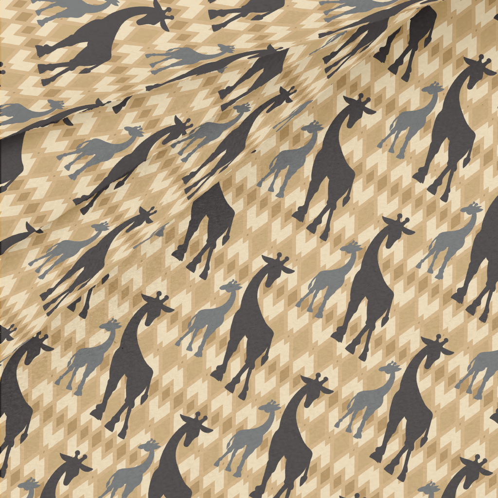 長頸鹿家族剪影水晶絨(幅寬160公分)