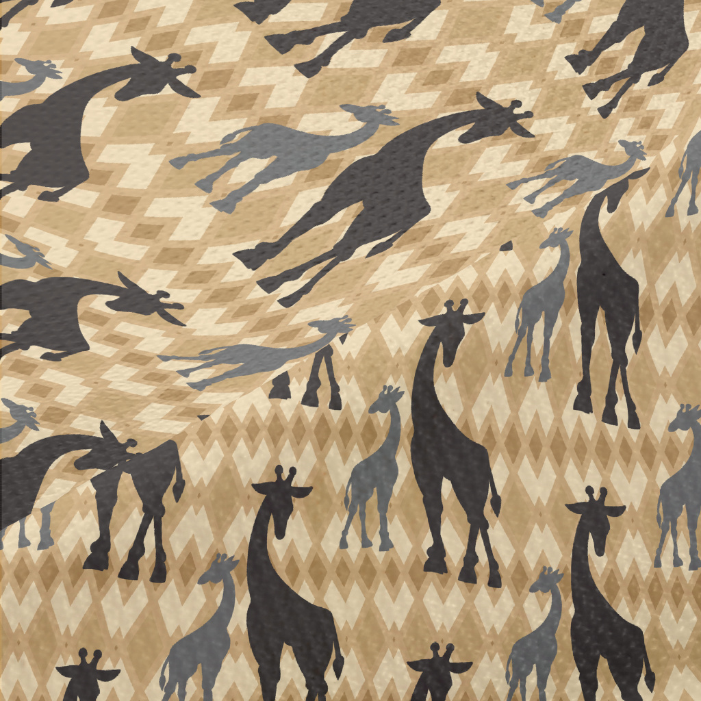 長頸鹿家族剪影高爾布(幅寬180公分)