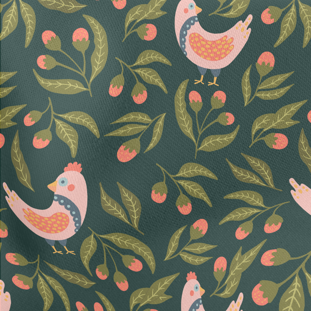 彩色母雞與漿果羅馬布(幅寬160公分)