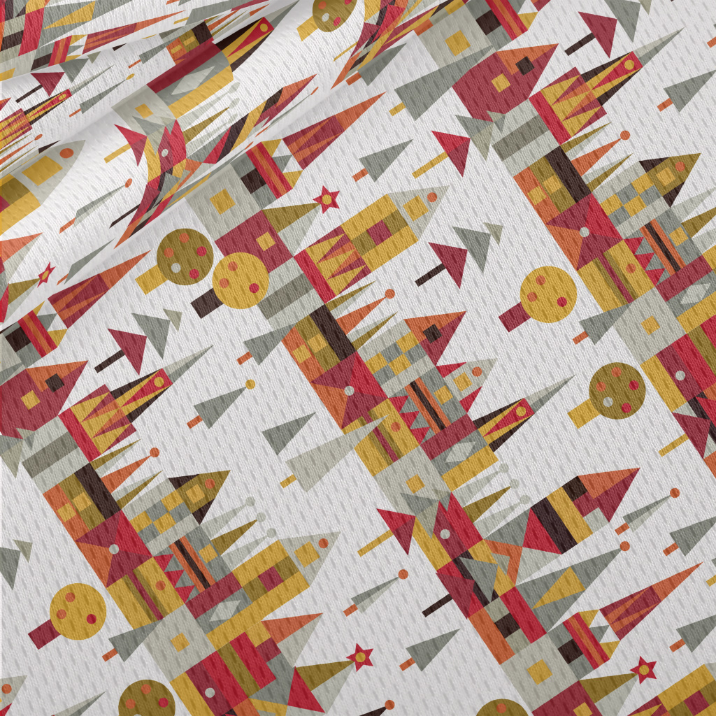卡通中世紀宮殿鳥眼布(幅寬160公分)