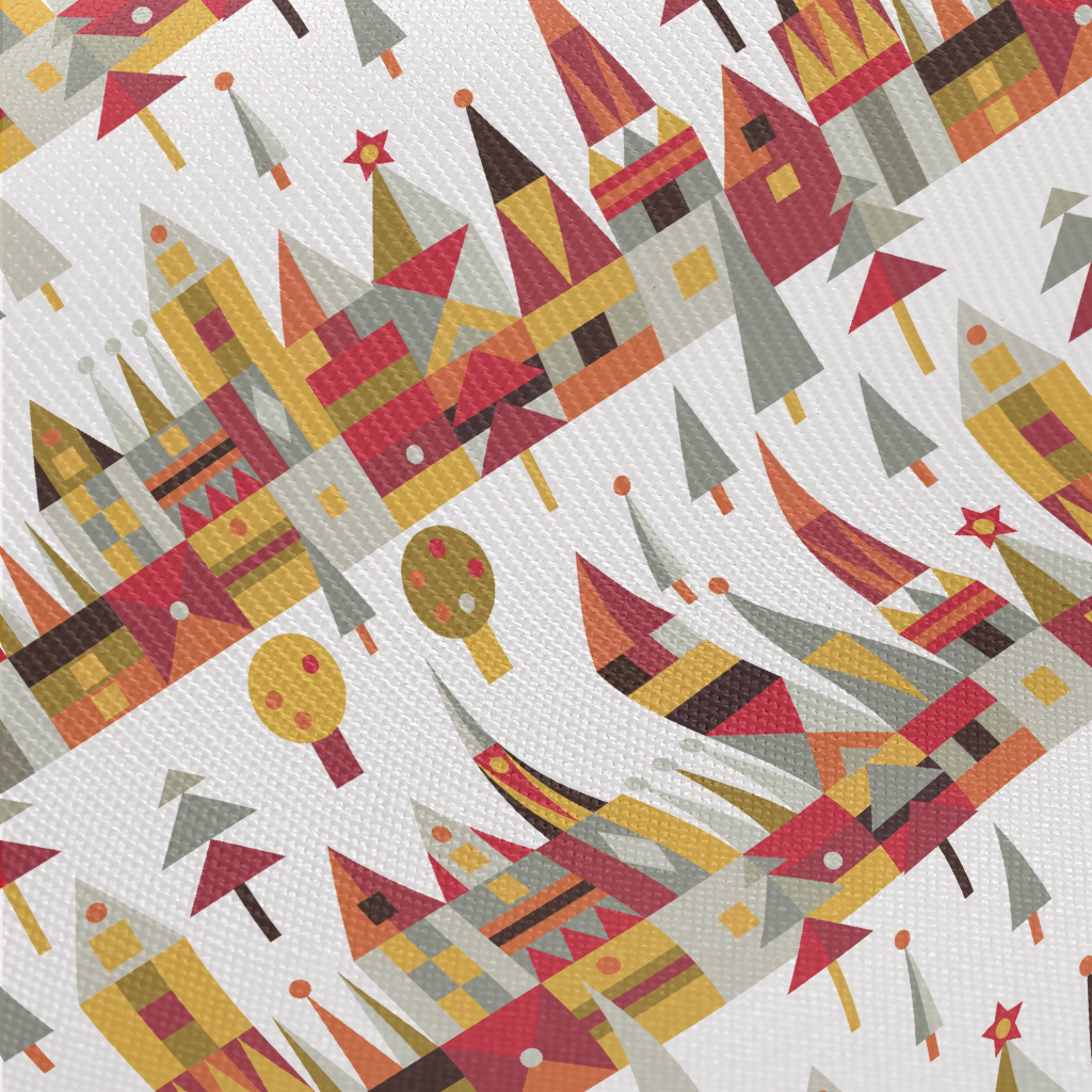 卡通中世紀宮殿厚棉布(幅寬150公分)