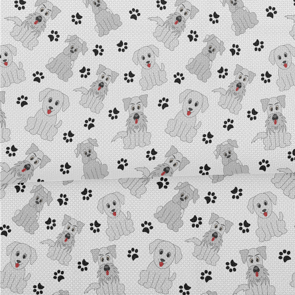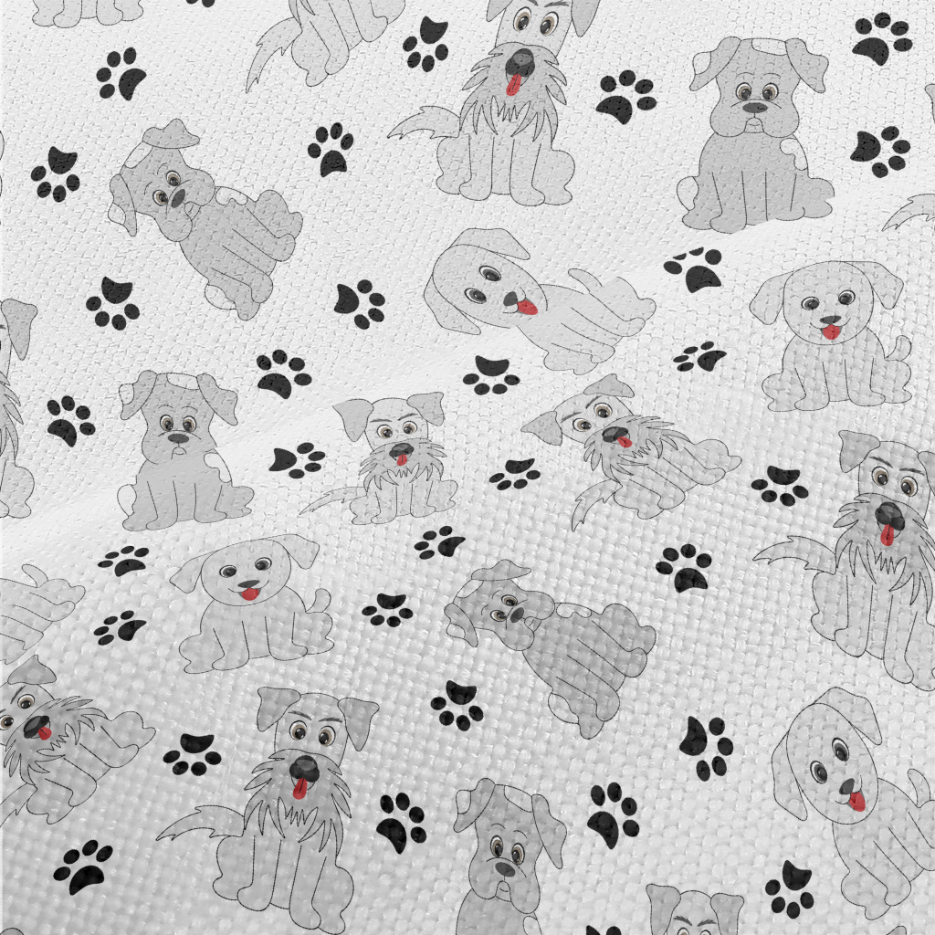 卡通灰色小狗麻布(幅寬150公分)