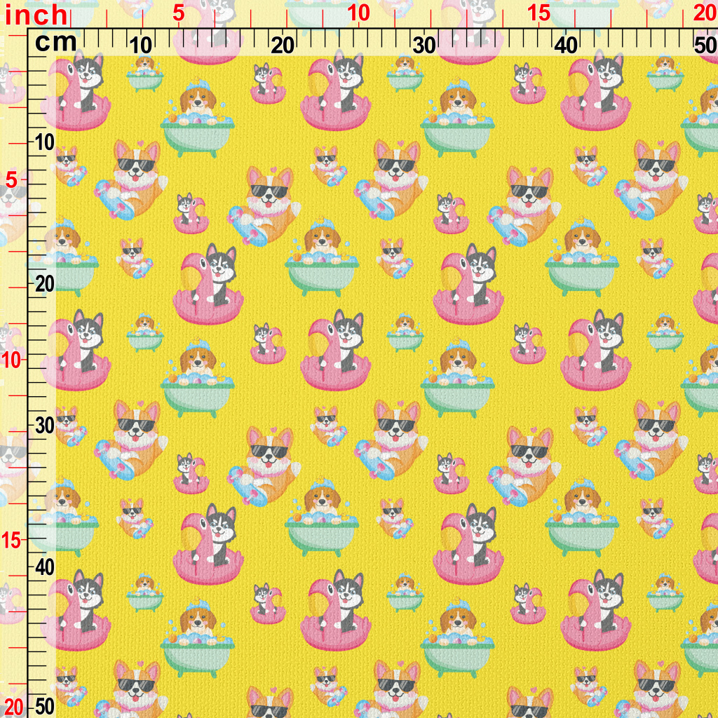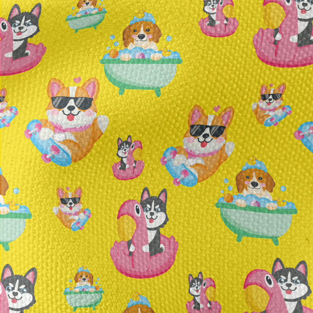 可愛狗狗玩滑板帆布(幅寬150公分)