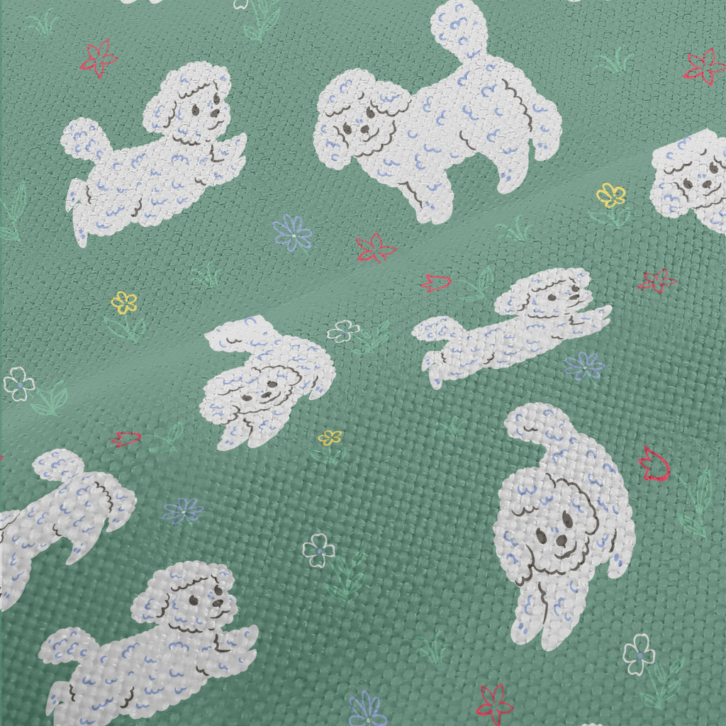 白色小狗在花園麻布(幅寬150公分)