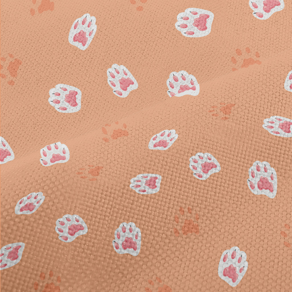手繪粉色貓掌麻布(幅寬150公分)