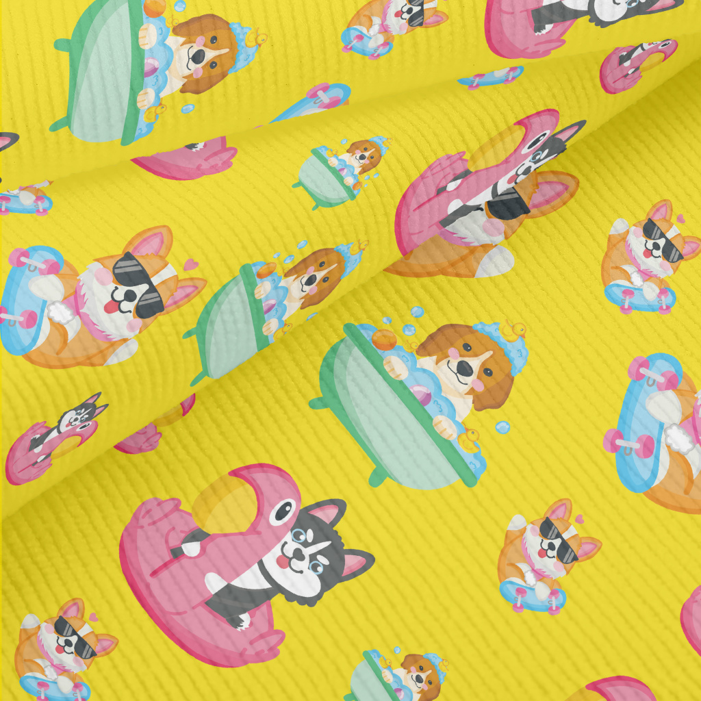 可愛狗狗玩滑板燈芯絨(幅寬150公分)