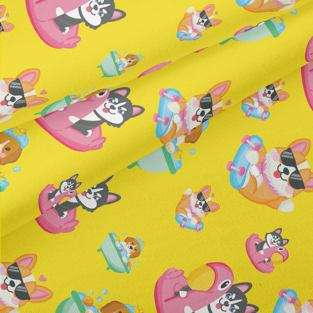 可愛狗狗玩滑板仿棉布(幅寬150公分)