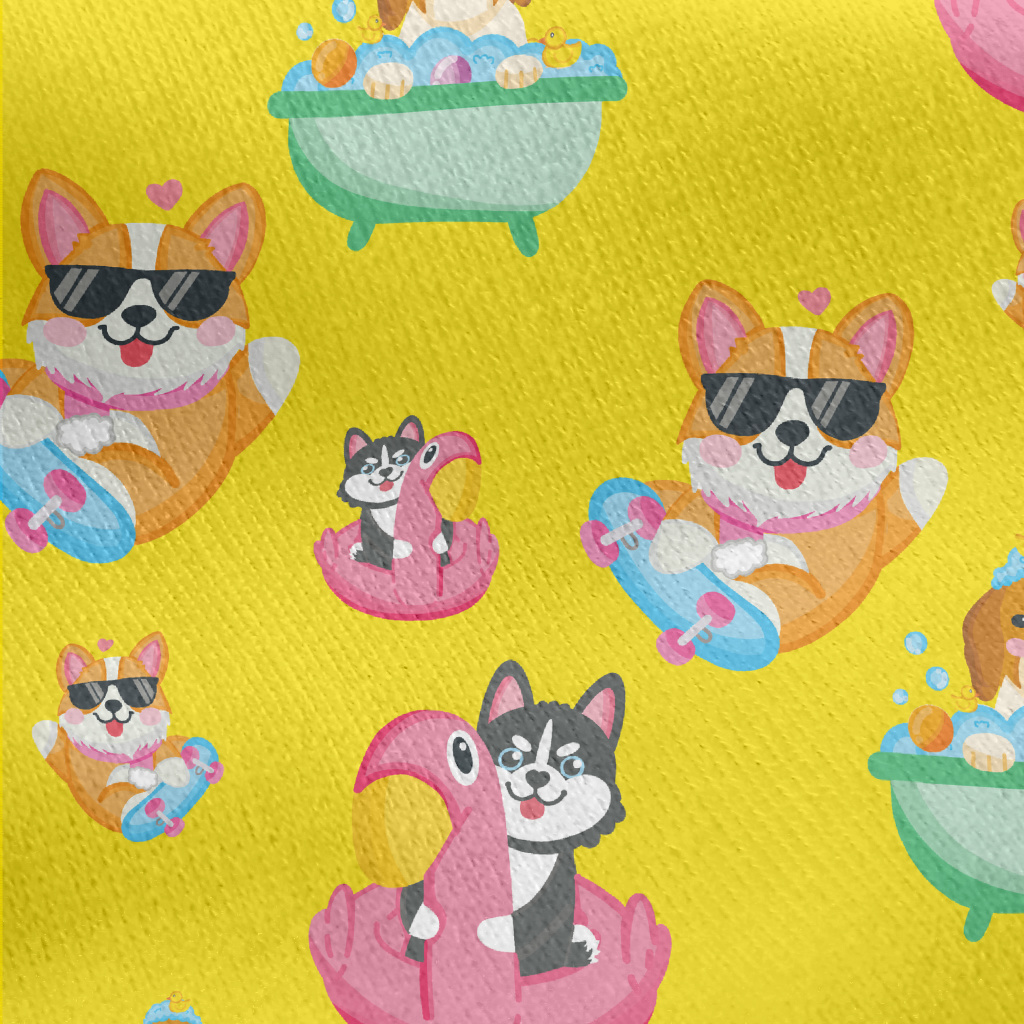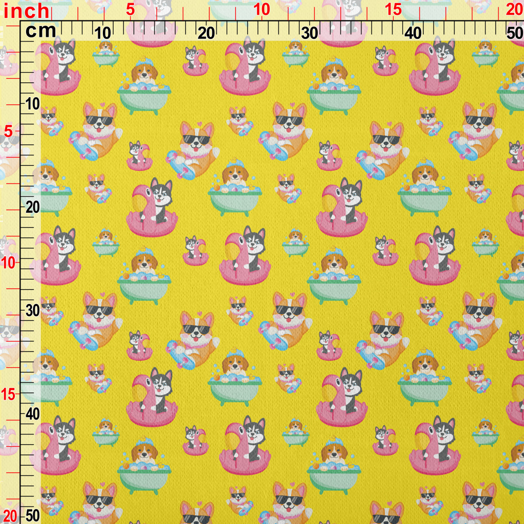 可愛狗狗玩滑板刷毛布(幅寬150公分)