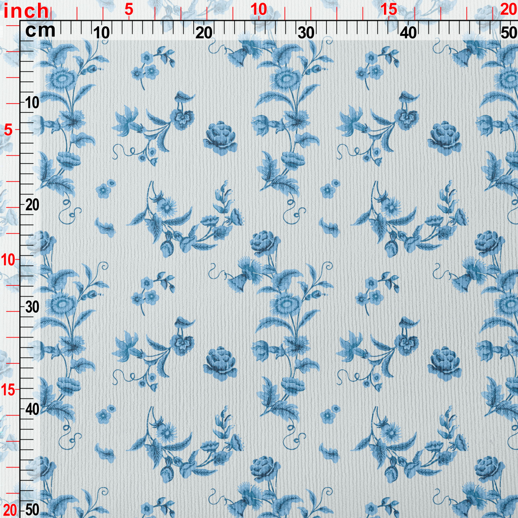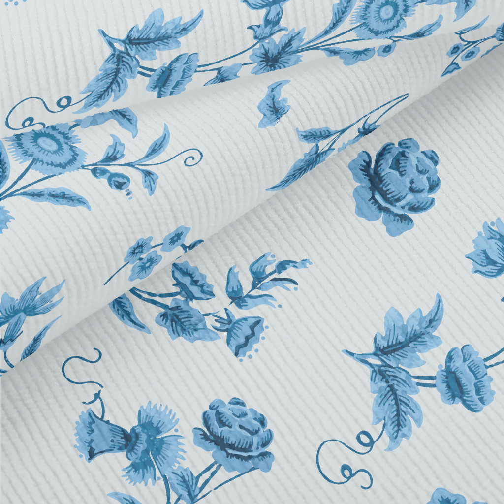 優雅藍色花朵燈芯絨(幅寬150公分)