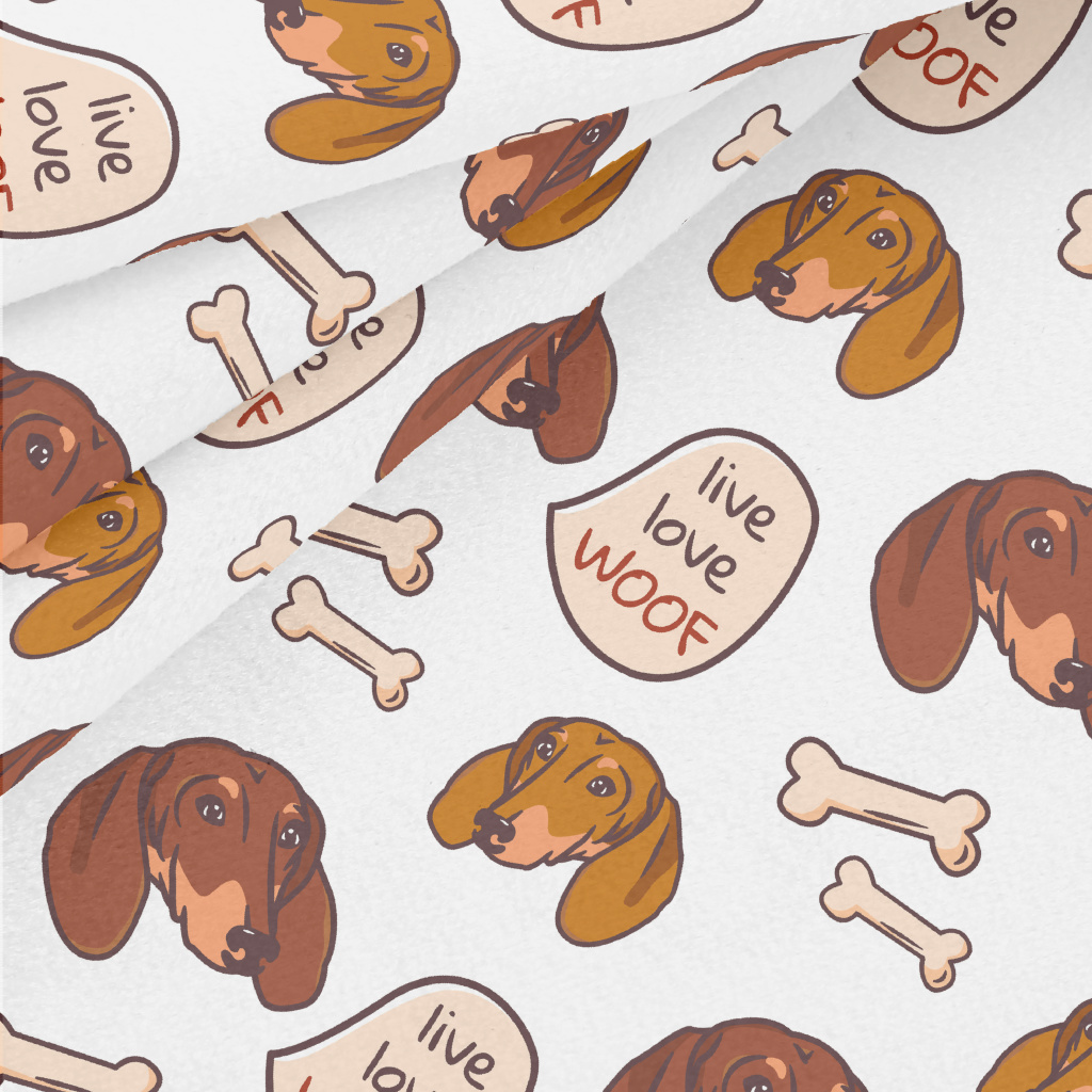 臘腸犬與狗骨頭水晶絨(幅寬160公分)