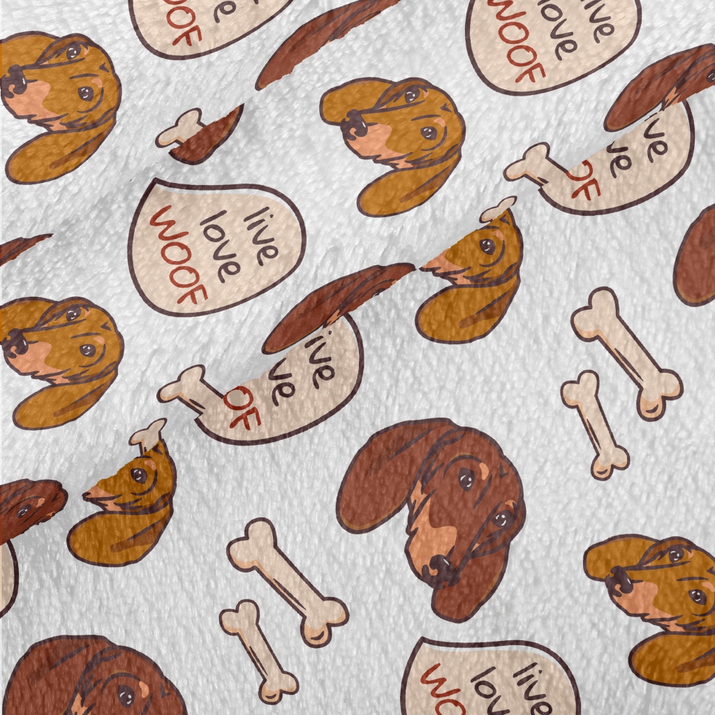 臘腸犬與狗骨頭法蘭絨(幅寬150公分)