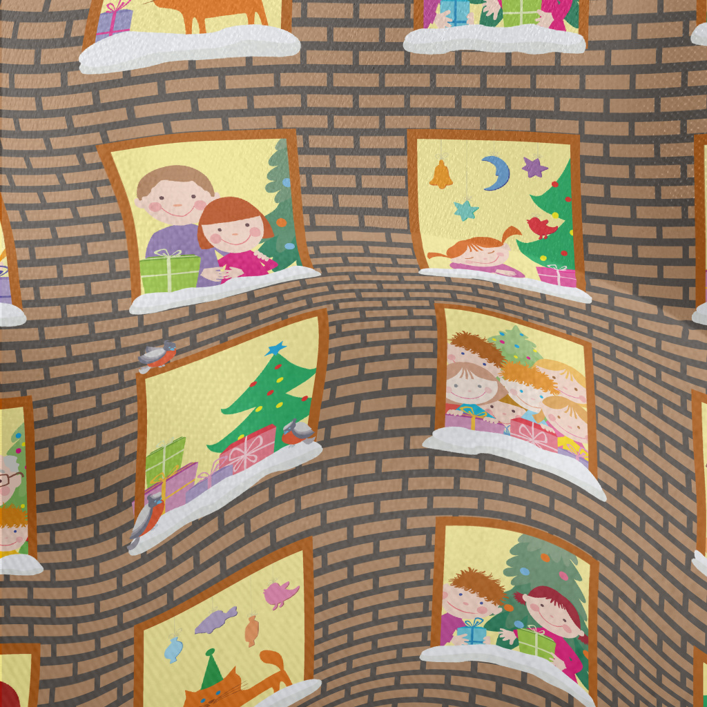聖誕節公寓窗戶竹節麻(幅寬150公分)