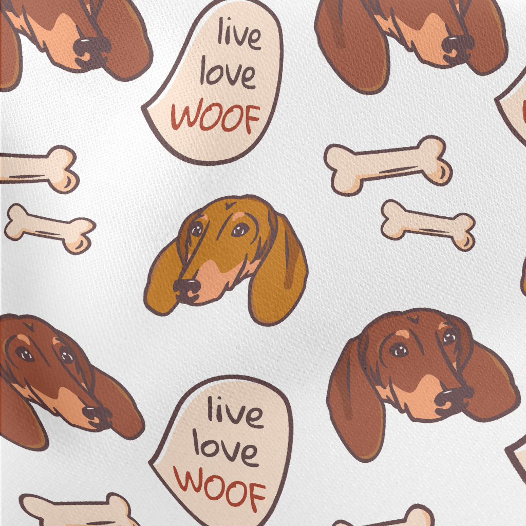 臘腸犬與狗骨頭薄棉布(幅寬150公分)