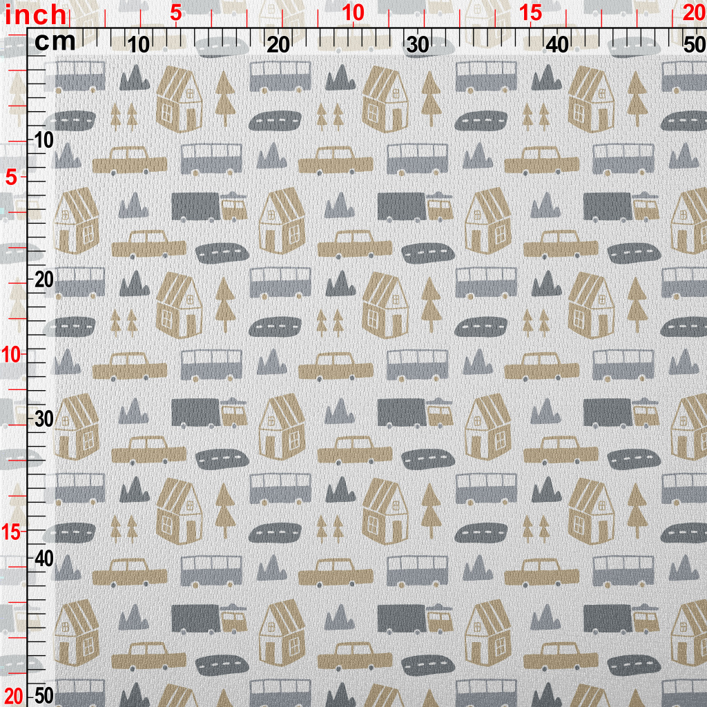 房屋與汽車塗鴉鳥眼布(幅寬160公分)