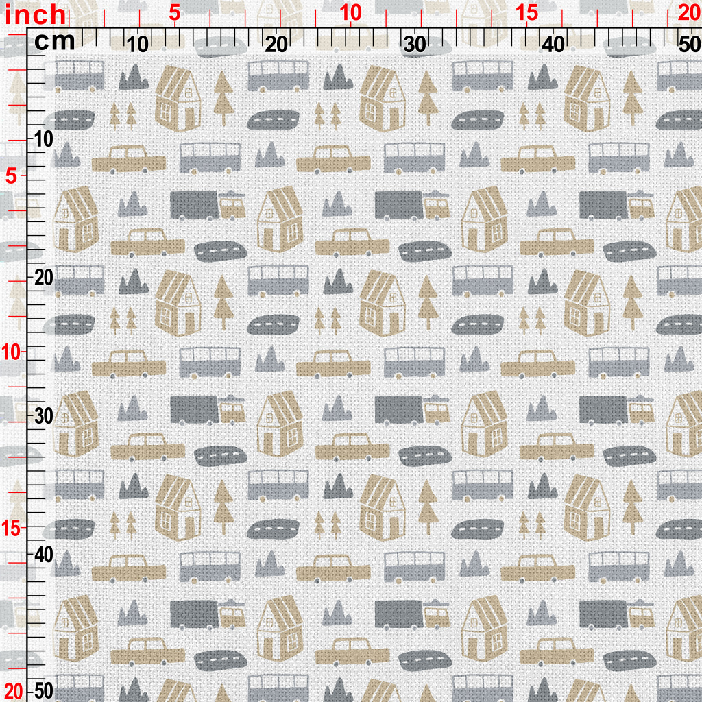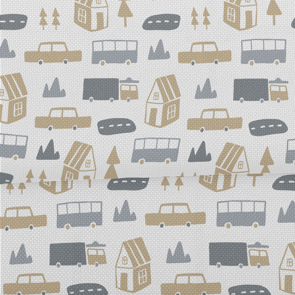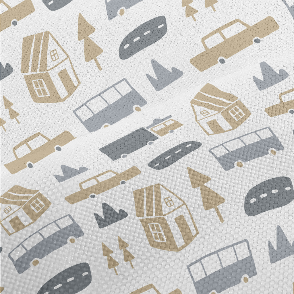 房屋與汽車塗鴉麻布(幅寬150公分)