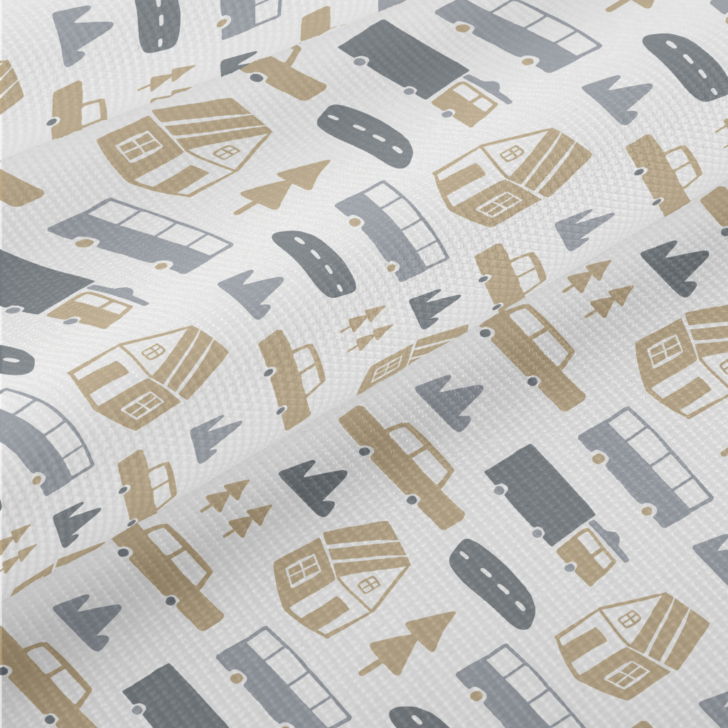 房屋與汽車塗鴉雙斜布(幅寬150公分)
