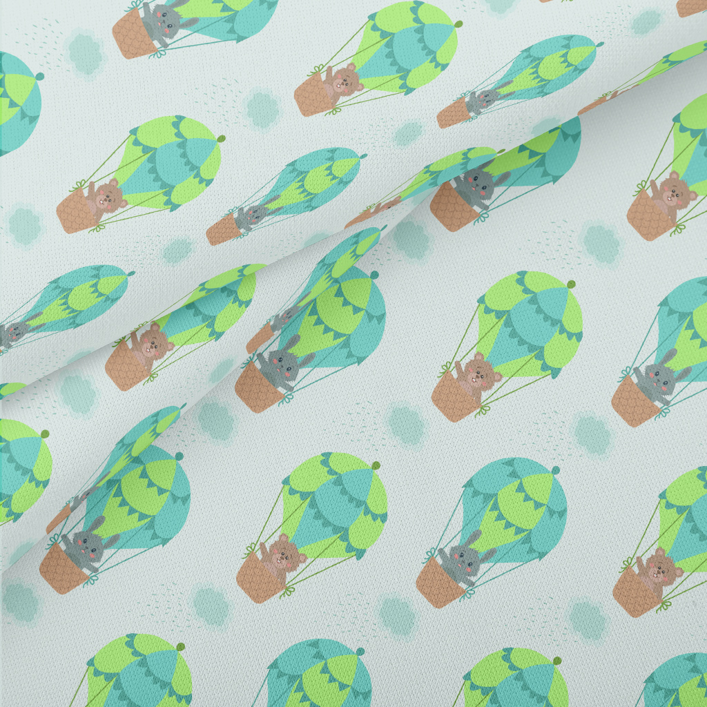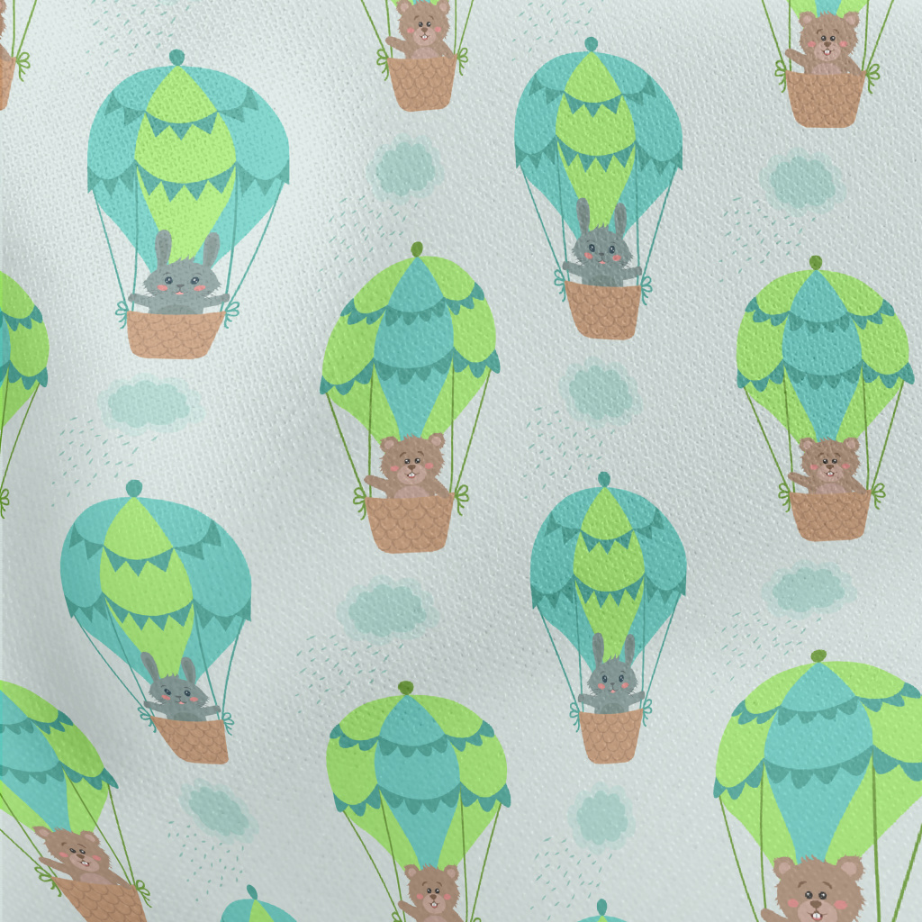 兔子與熊搭熱氣球薄棉布(幅寬150公分)