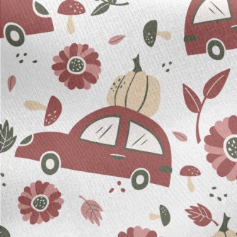 手繪車子載南瓜斜紋布(幅寬150公分)