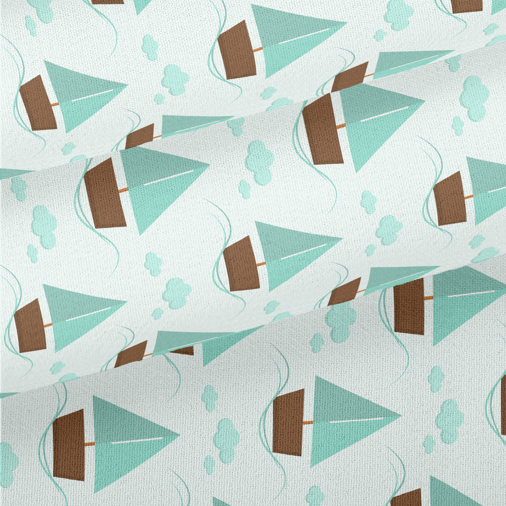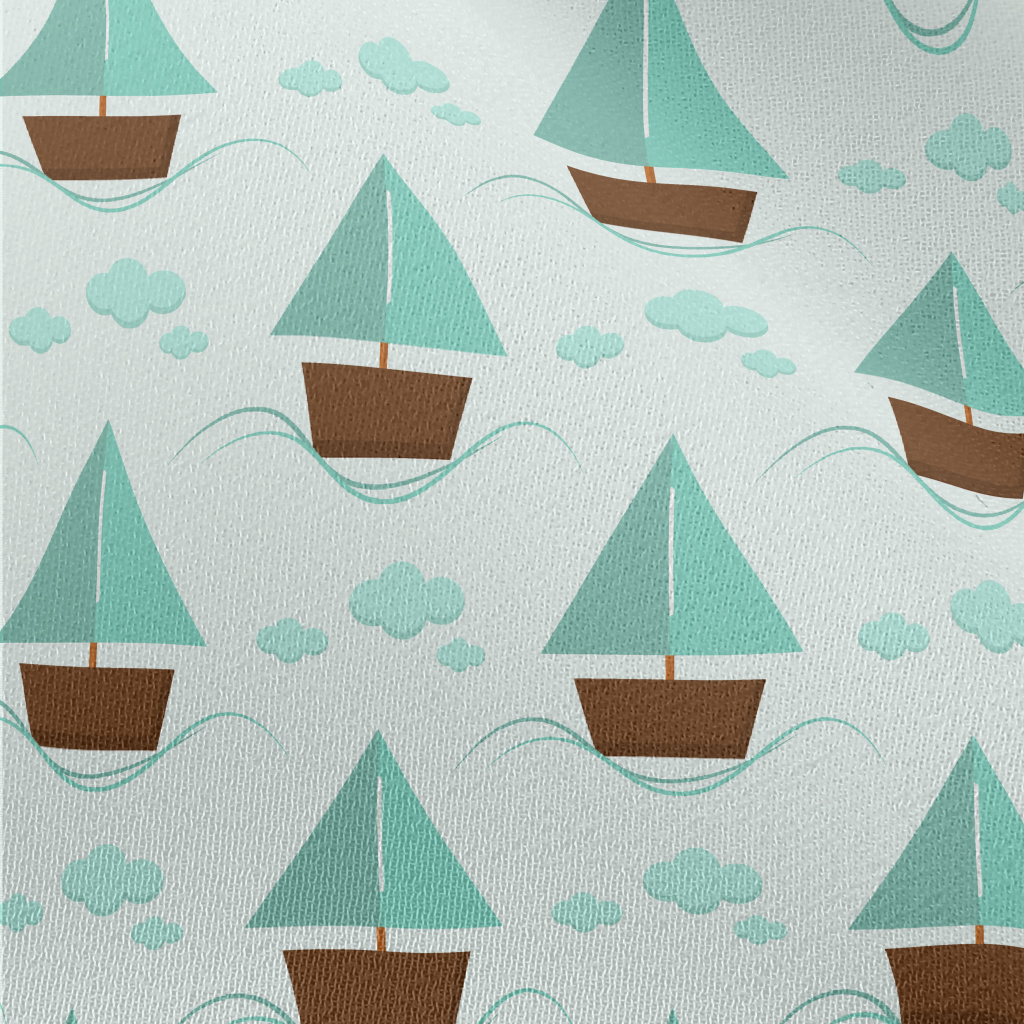 薄荷綠可愛帆船雪紡布(幅寬150公分)