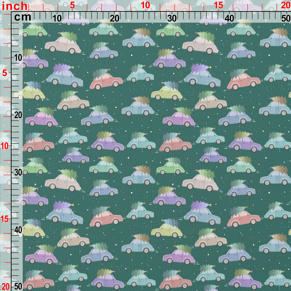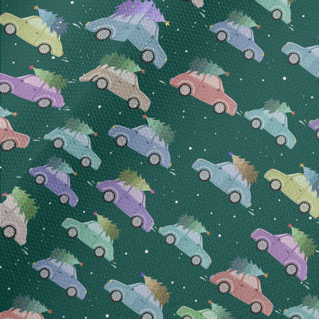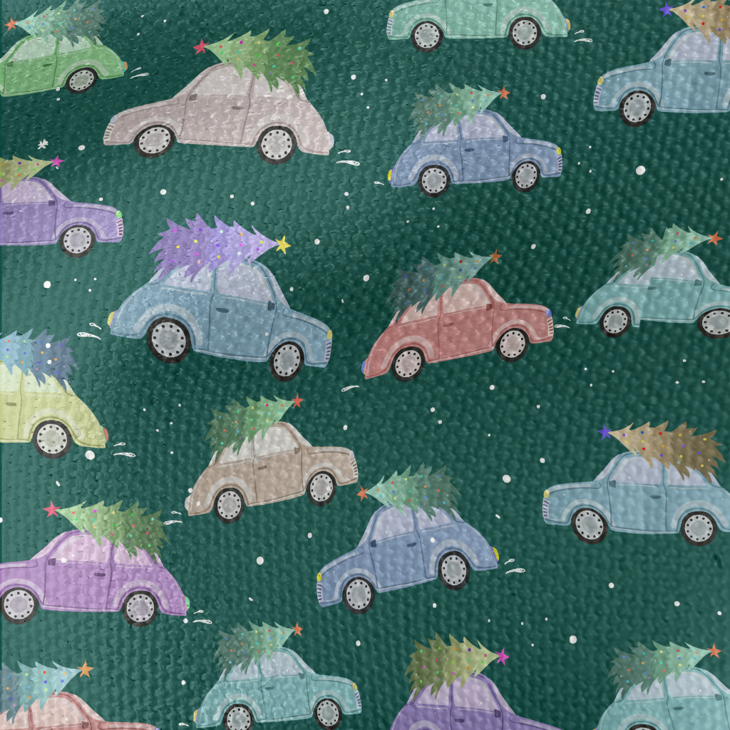 彩色汽車與聖誕樹帆布(幅寬150公分)