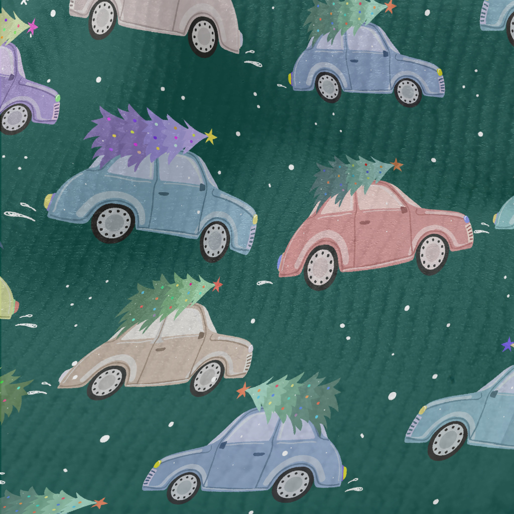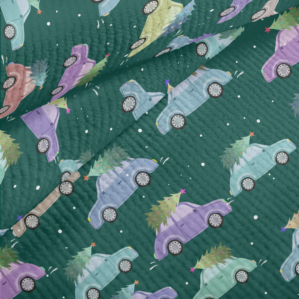 彩色汽車與聖誕樹毛巾布(幅寬160公分)