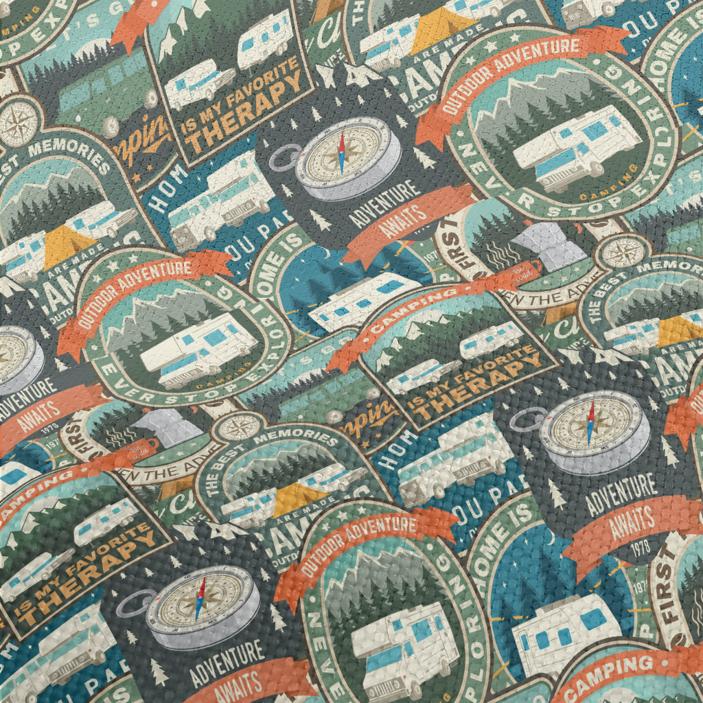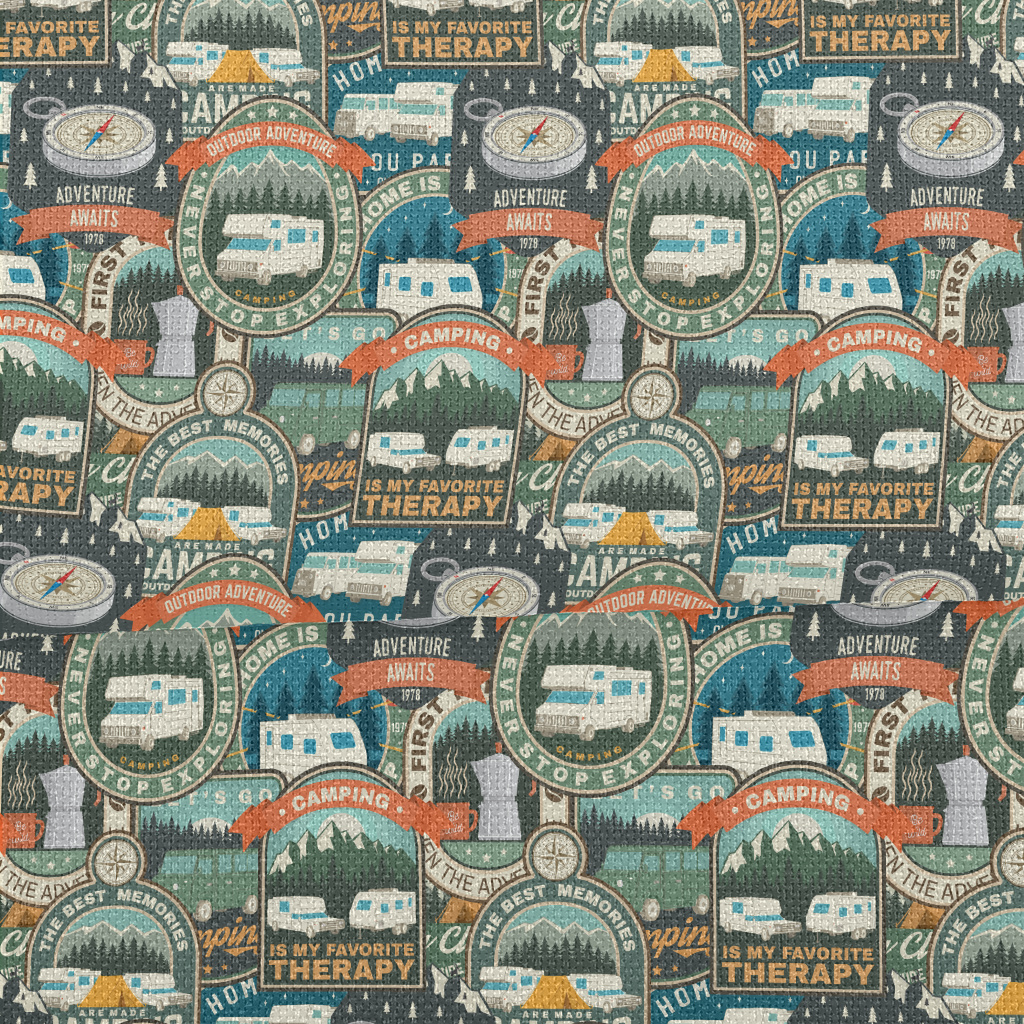 夏日露營標誌麻布(幅寬150公分)