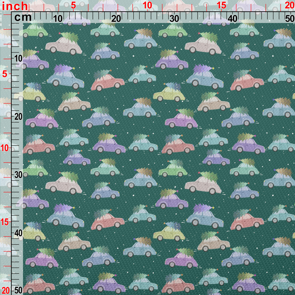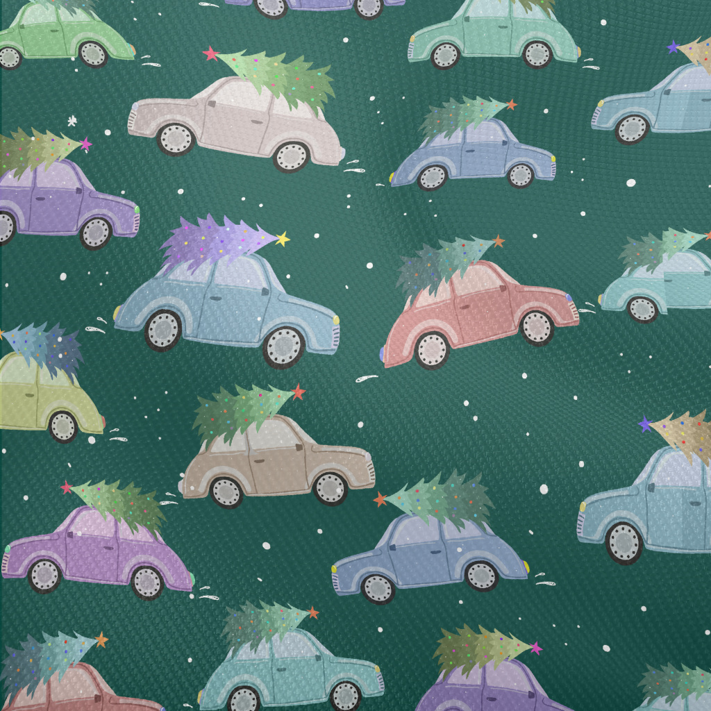 彩色汽車與聖誕樹雙斜布(幅寬150公分)