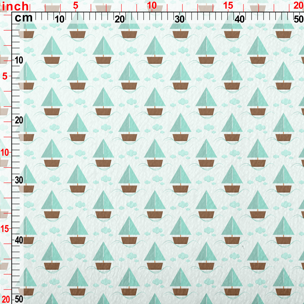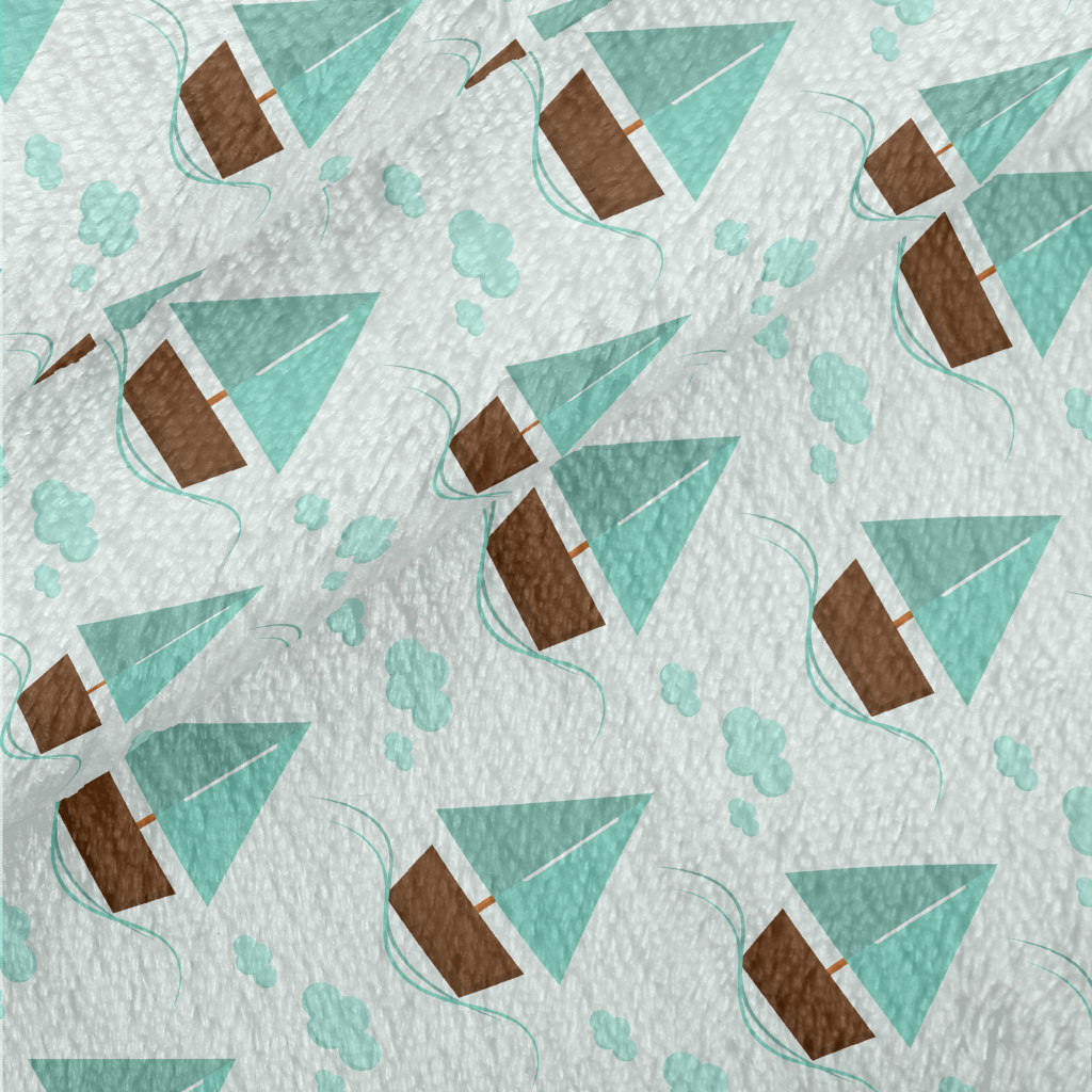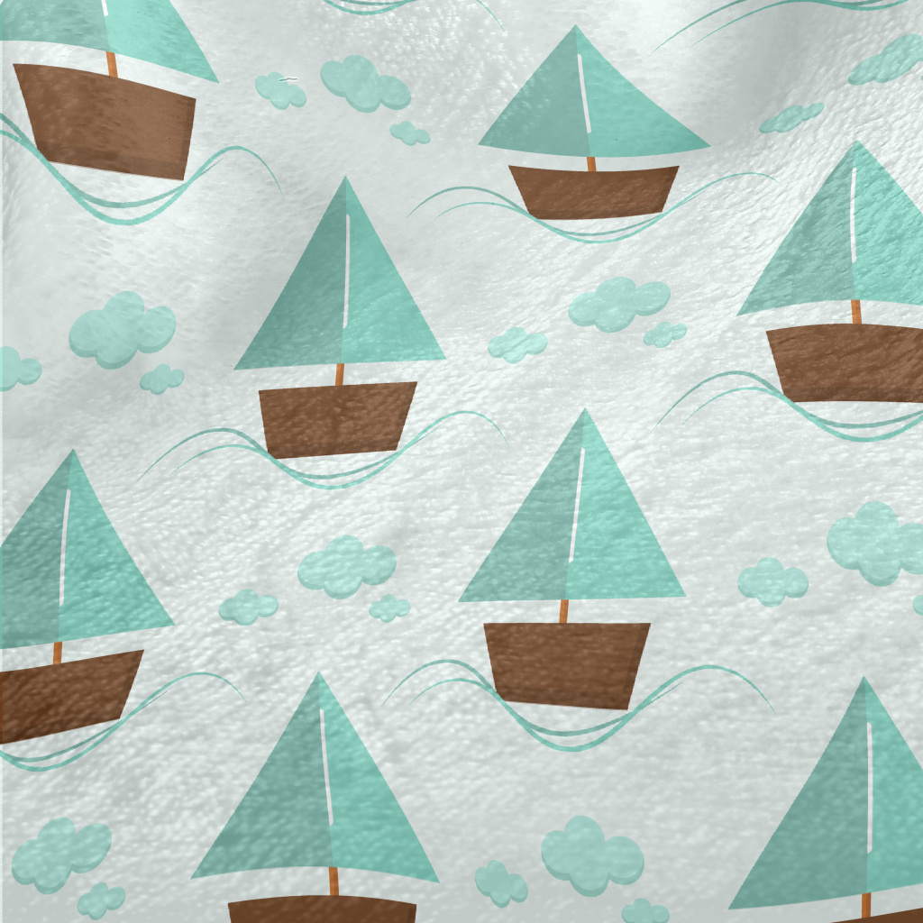 薄荷綠可愛帆船法蘭絨(幅寬150公分)